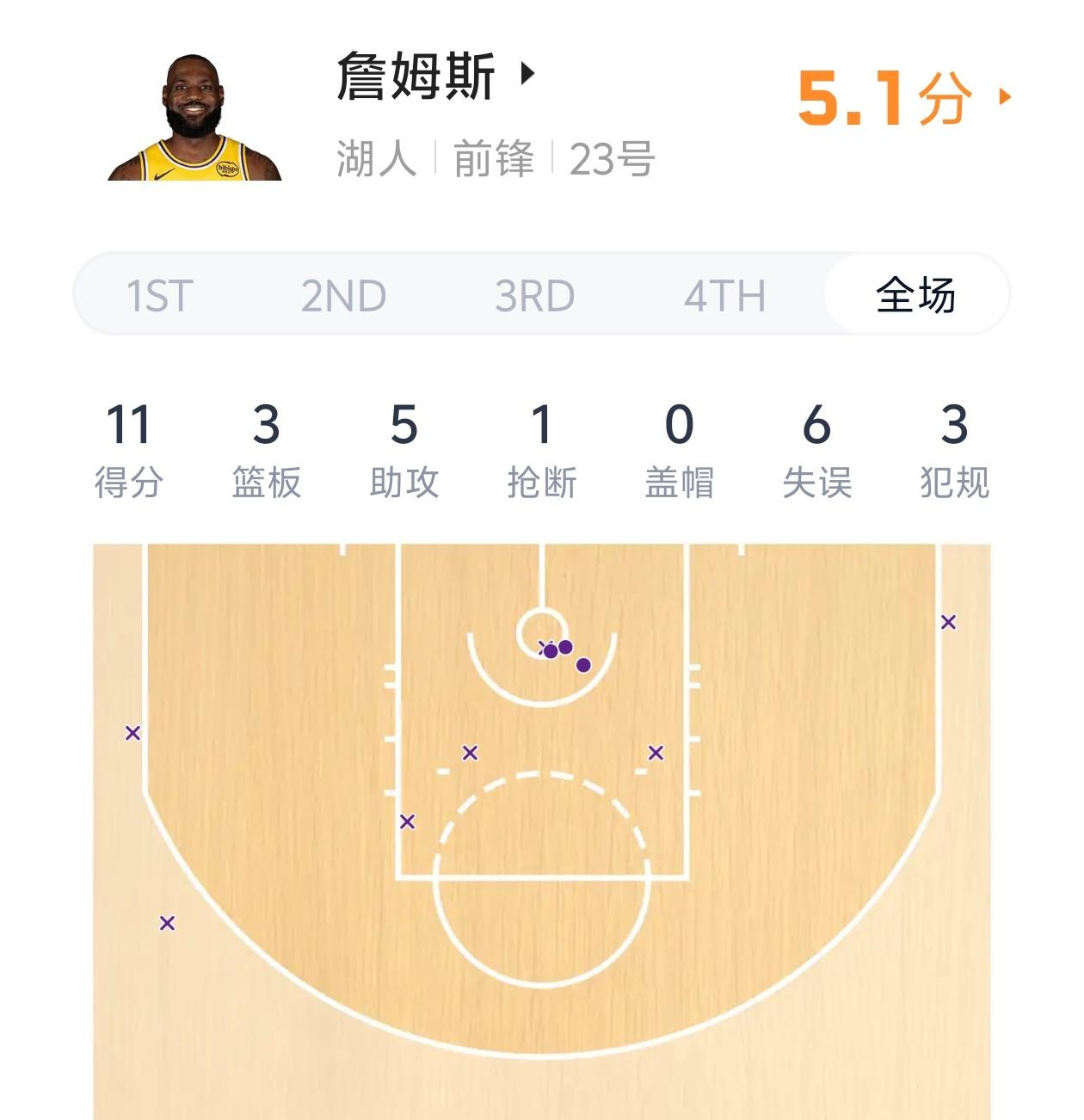 11分6失误!詹姆斯打出了本赛季最糟糕的一场比赛! 湖人在对阵骑士比赛中突然在第三节崩盘,被骑士一波流拉开比分提前锁定比赛胜利。 湖人在本场比赛的攻防两端都出现了极大的问题,尤其是在进攻端仅依赖东契奇一人得分,其余球员得分均未超过12分。詹姆斯在本场比赛打出了本赛季最糟糕的表现,詹姆斯投篮10中3,仅得到11分3篮板5助攻,同时还出现了6次失误,这在詹姆斯整个职业生涯都非常罕见。 通过比赛可以发现41岁的詹姆斯是真老了,他对比赛的影响力正在大幅下滑!