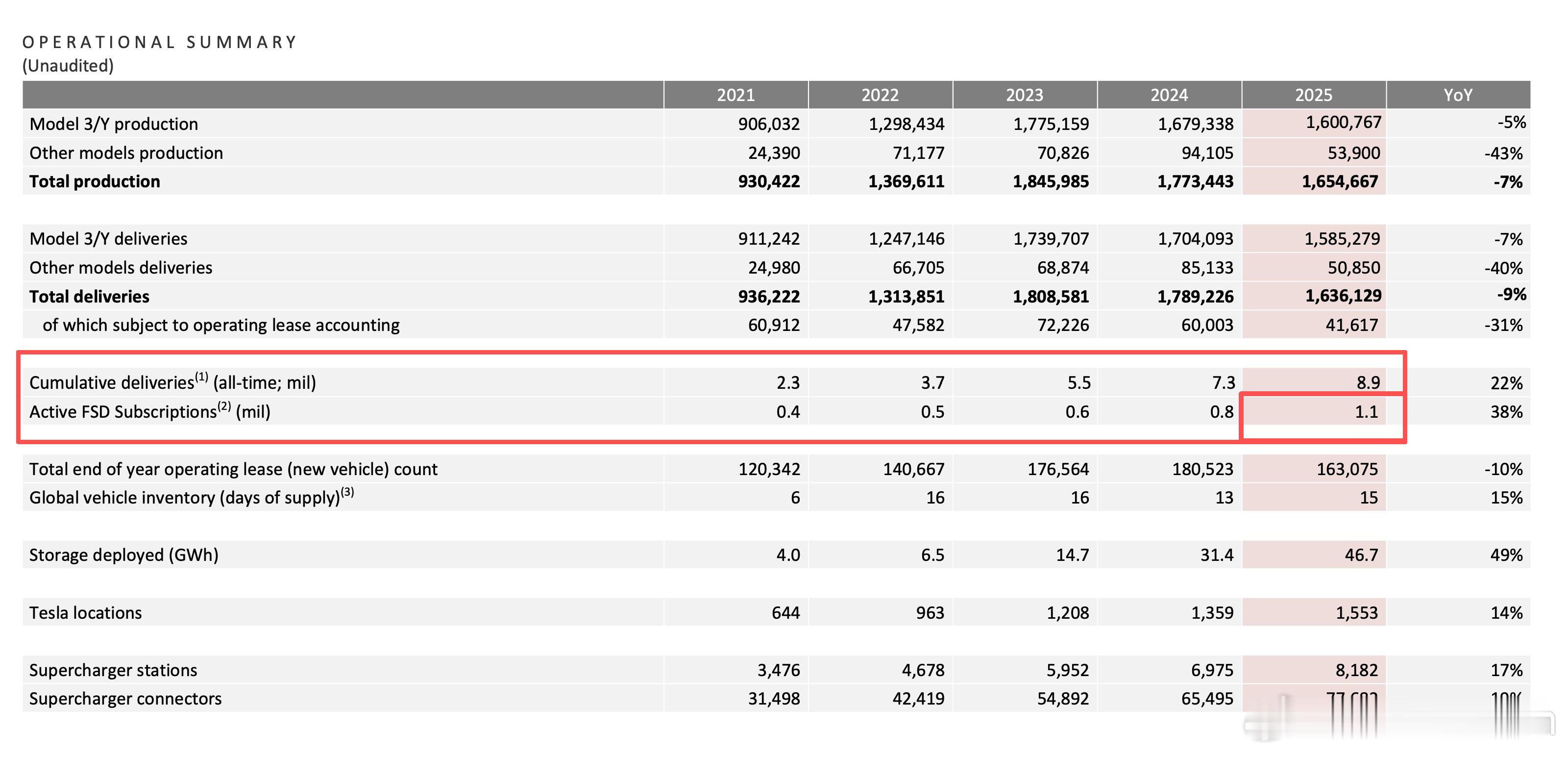 特斯拉也算是首次公布了带有FSD车辆的数量,2025年共有110万辆表格里也显示了,特斯拉一共交付890万辆所以选配了FSD的比例达到了大概12.4%这个数据应该超出所有人的预期了吧。也该狠狠打某些人的脸了。特斯拉