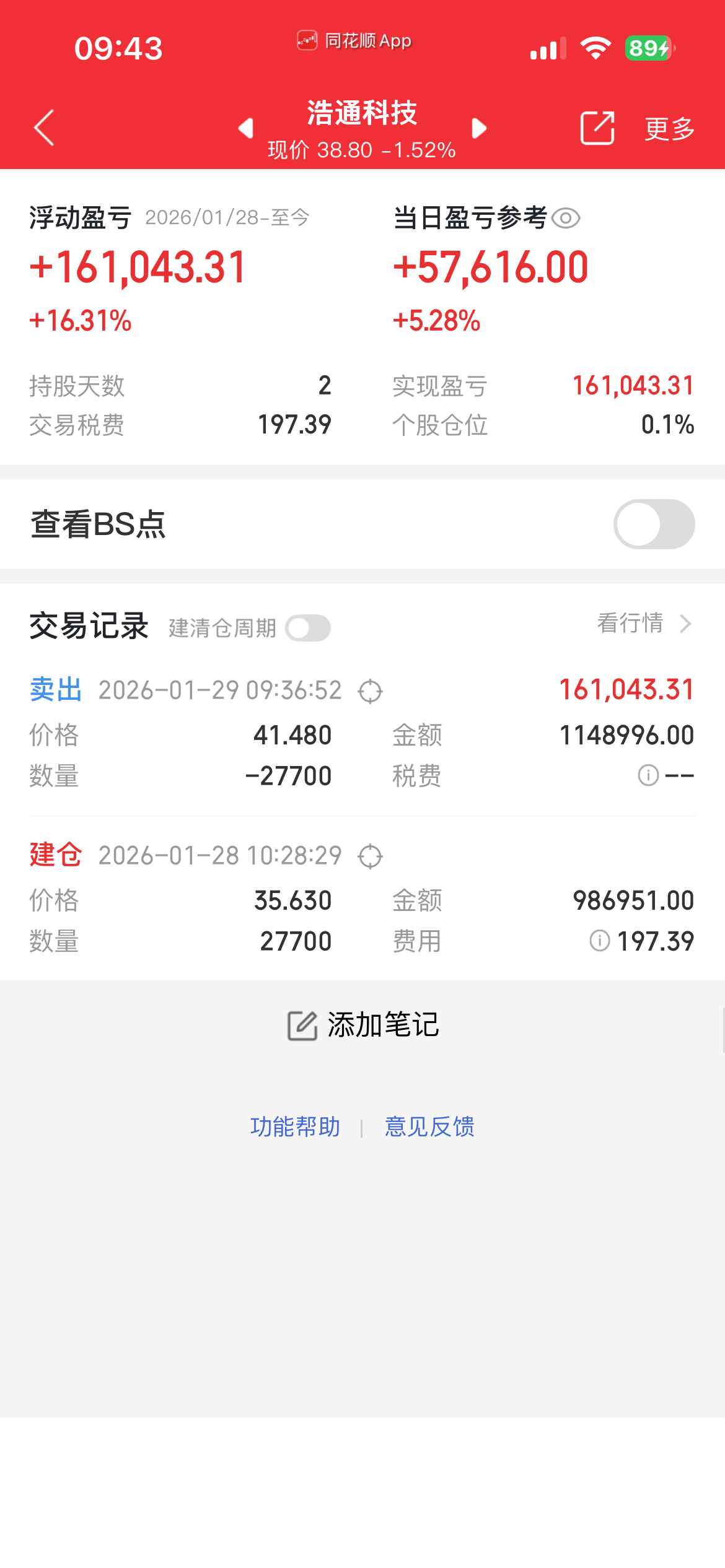 昨天进的$浩通科技 sz301026$ 冲高止盈出局!