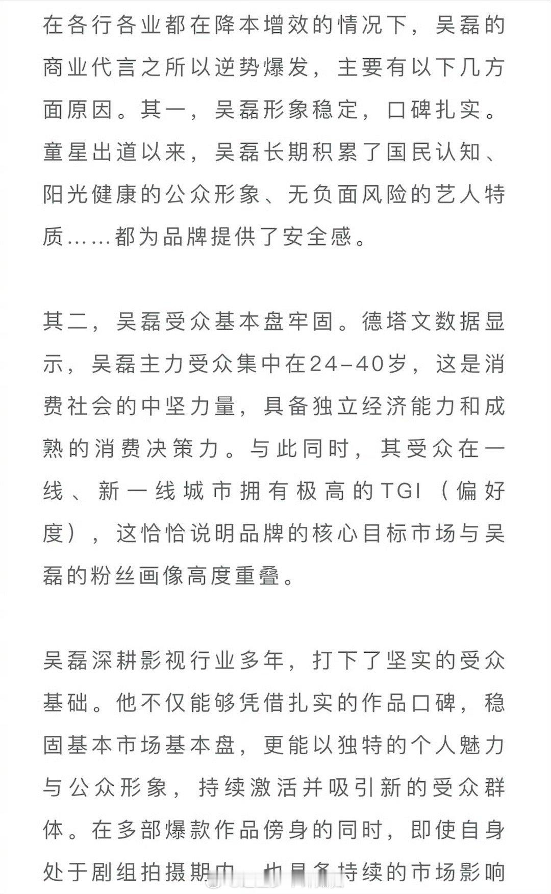 媒体评吴磊逆势爆发 不靠热搜,不依赖在播剧,吴磊的2025年照样精彩!德塔文认证他在“空窗期”实现逆势爆发,接连拿下11个商业合作。这证明了市场看重的不仅是短期热度,更是他身上“确定性”与“成长性”的长期价值,这种稳健的上升姿态太争气了!