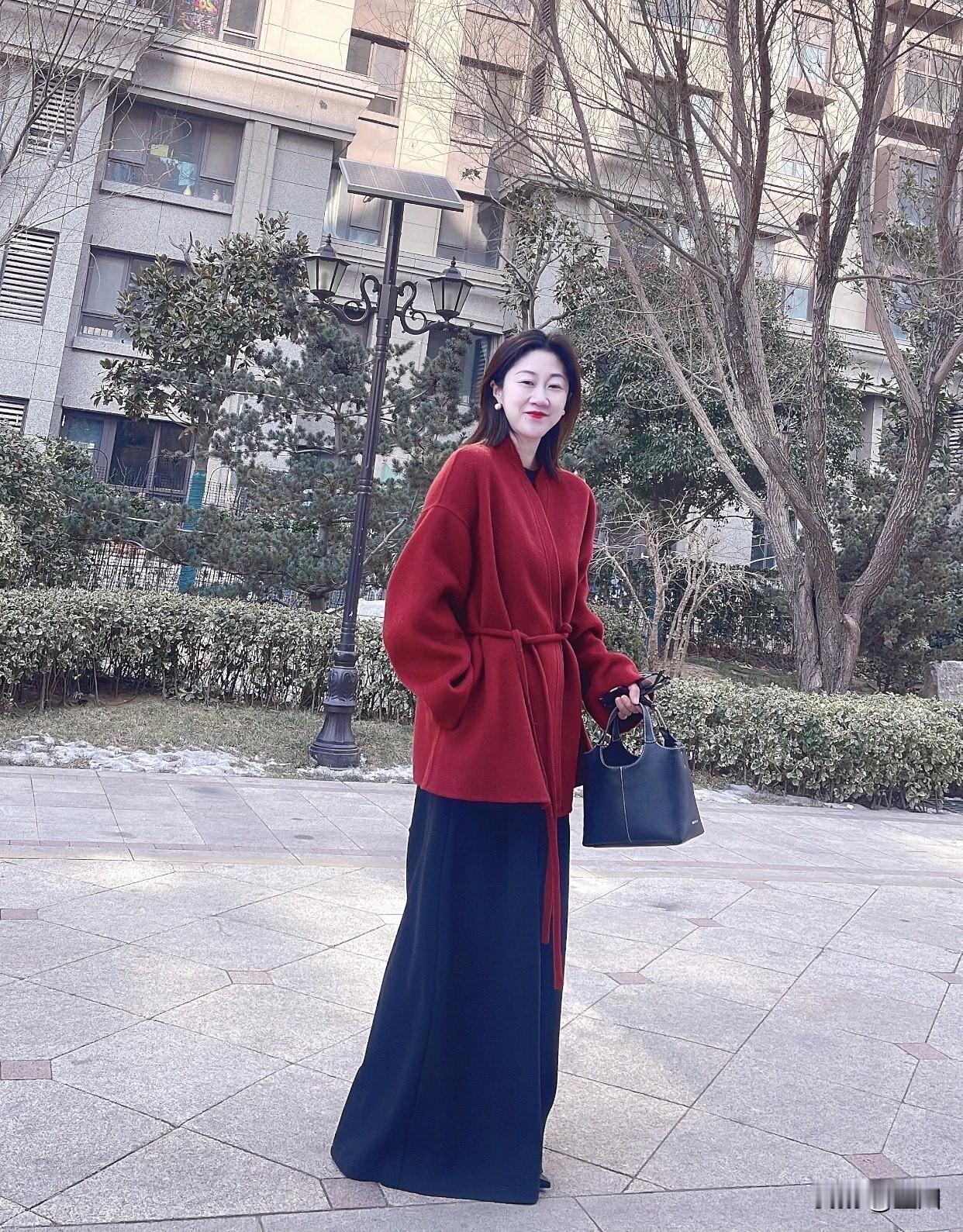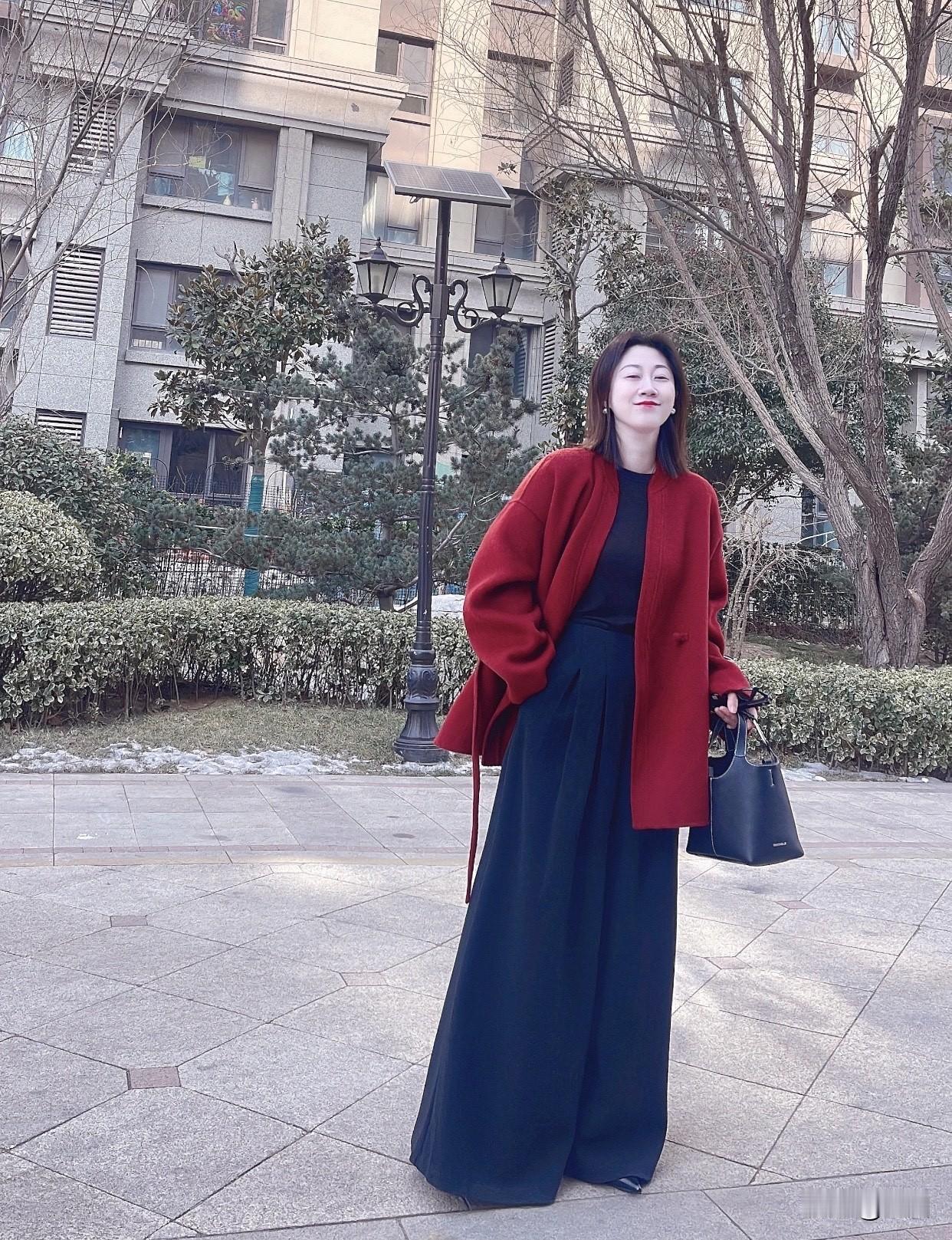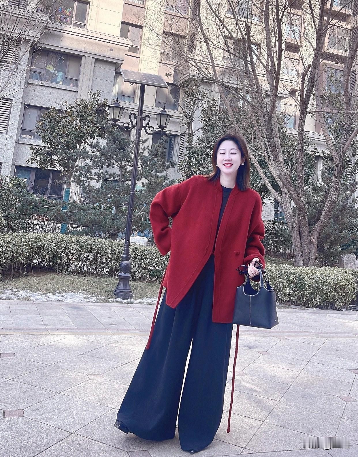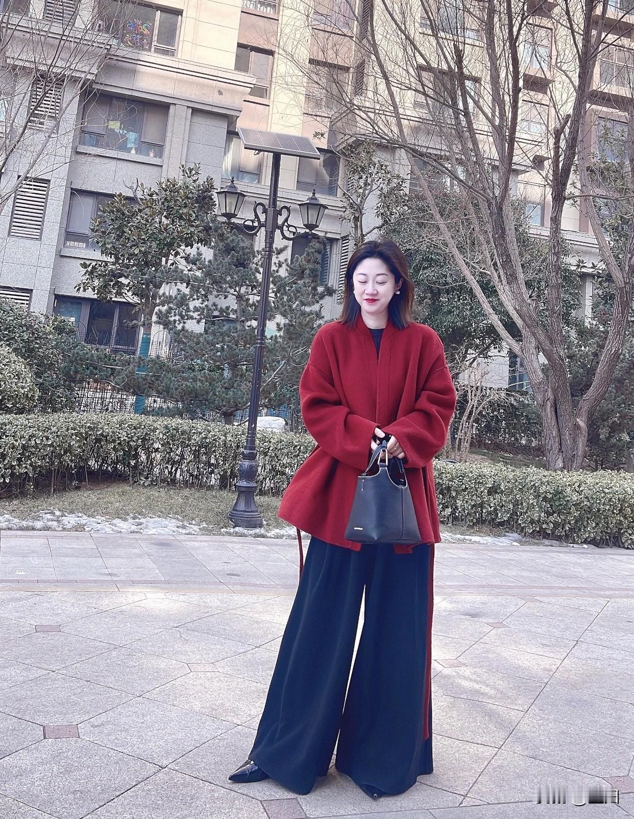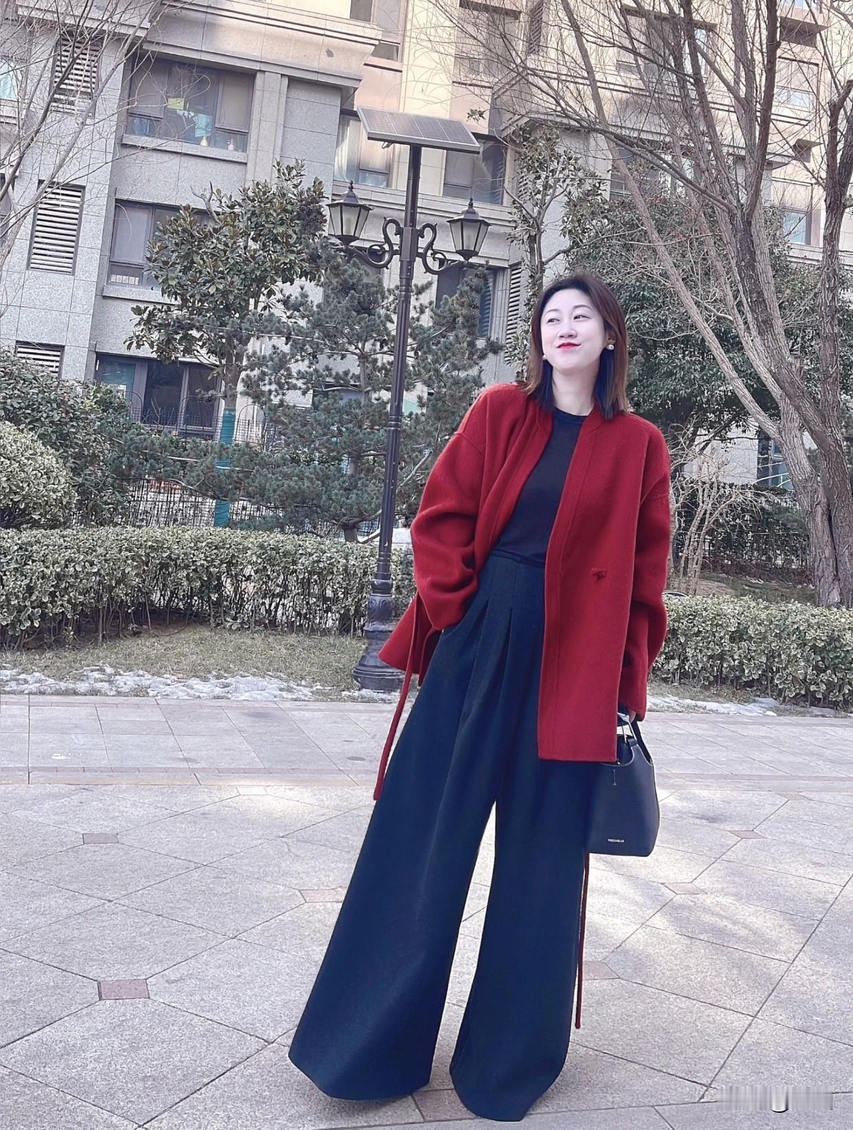 舒服又好看的穿搭有哪些冬日穿搭指南:红衣牛仔阔腿裤,温暖又时尚