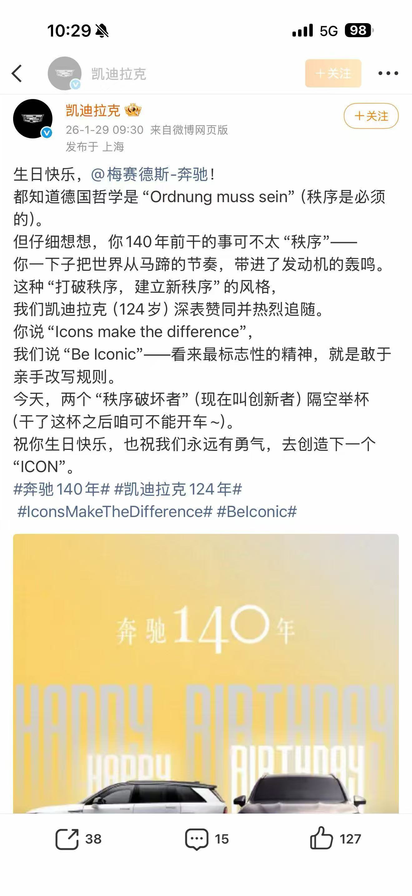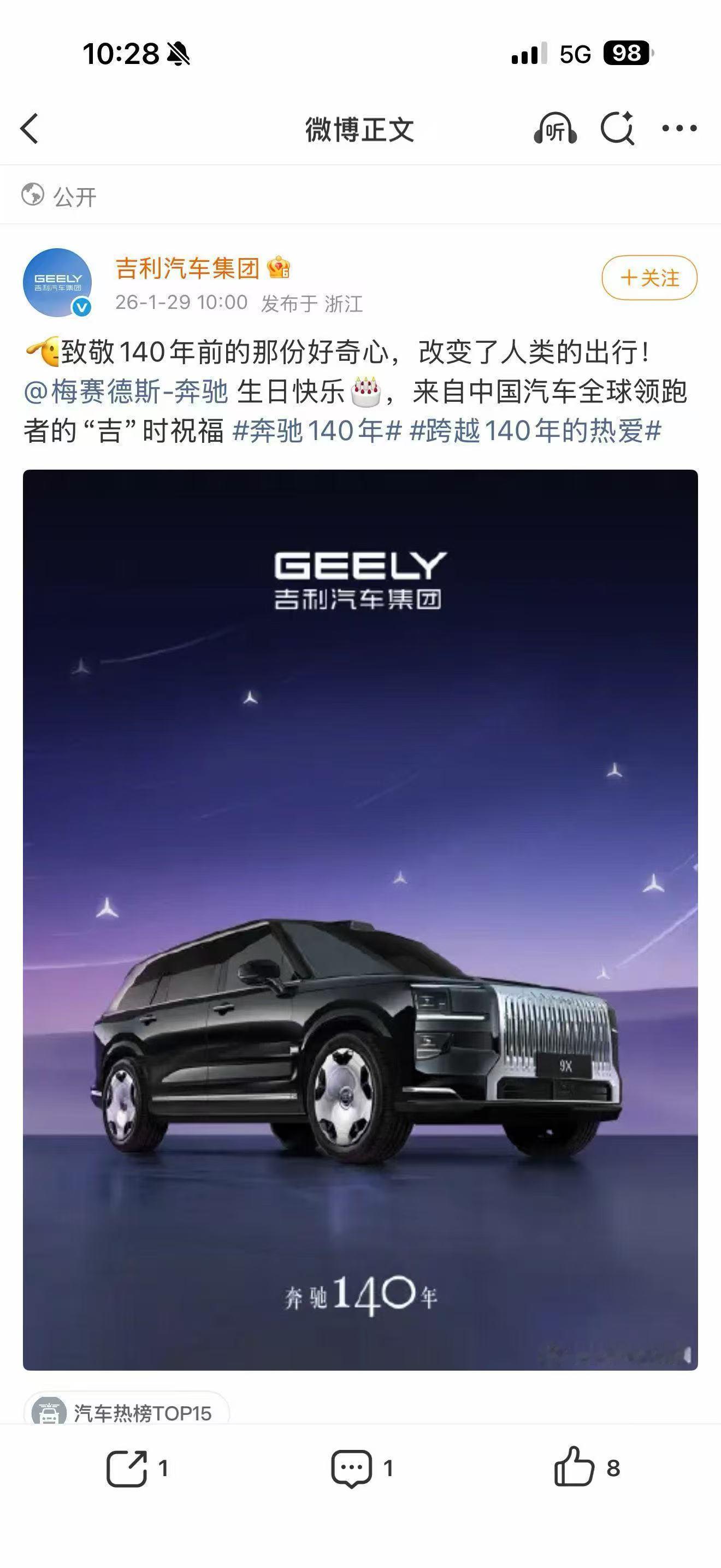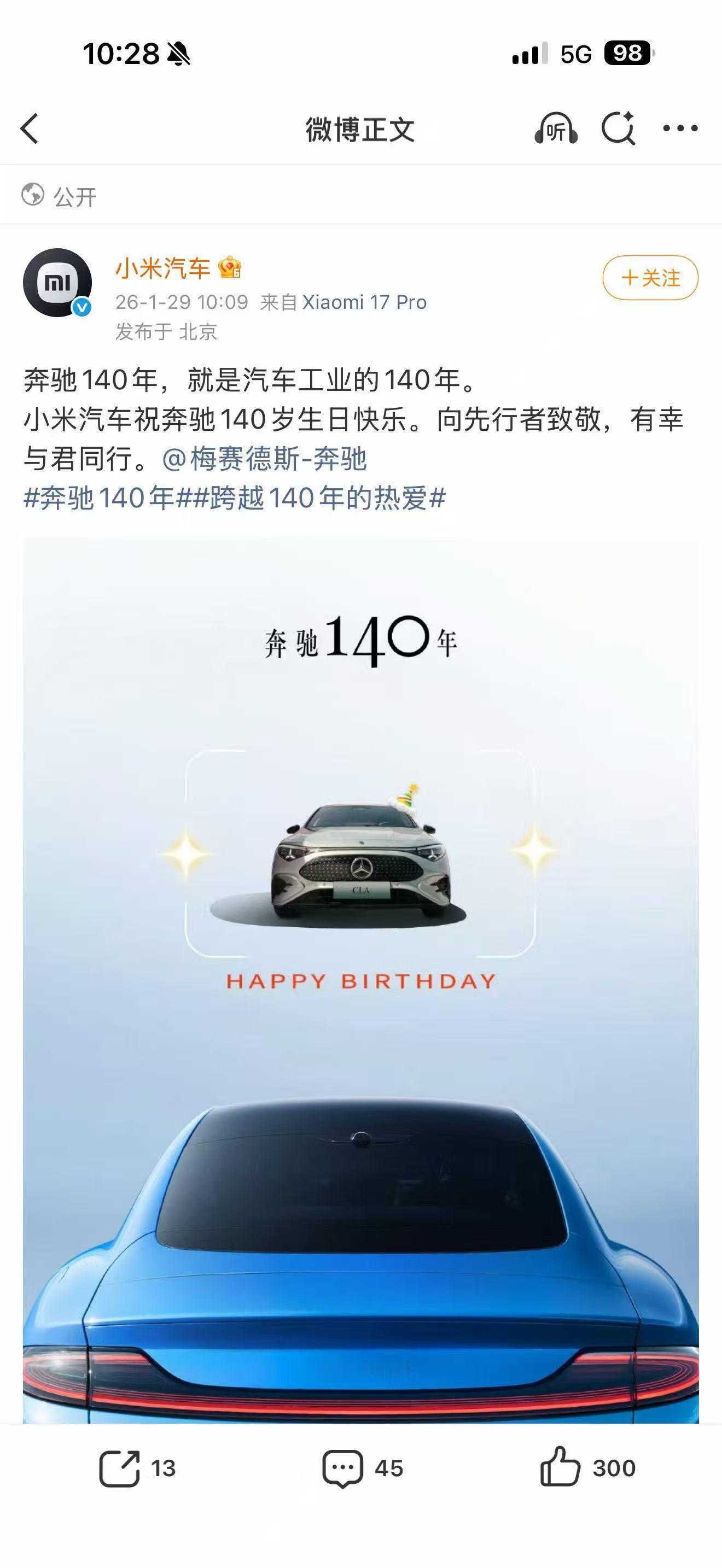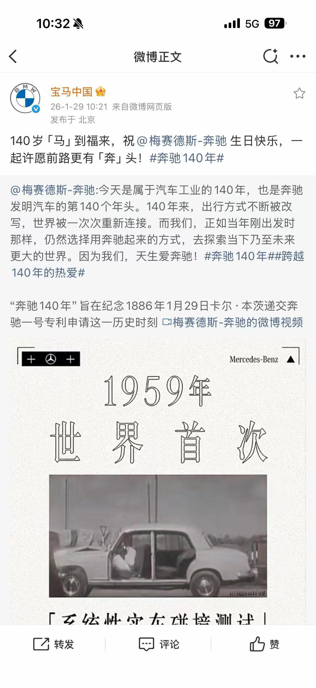 今天是 140岁生日。奥迪宝马,理想小米,各路新老对手,新老朋友,都来道贺。有点像最近几年网球四巨头在互相的退役仪式或者其他重要的节点,老对手之间的到场祝贺和惺惺相惜。这些温情脉脉的时刻,和08年温网决赛,12年澳网决赛,13年法网半决赛,17年澳网决赛那些火花四溅的时刻一起,铭记在网球迷的记忆里。这并不矛盾,这份温情脉脉在车市,好像已经变得越来越少,也显得越来越珍贵。新能源大牛说