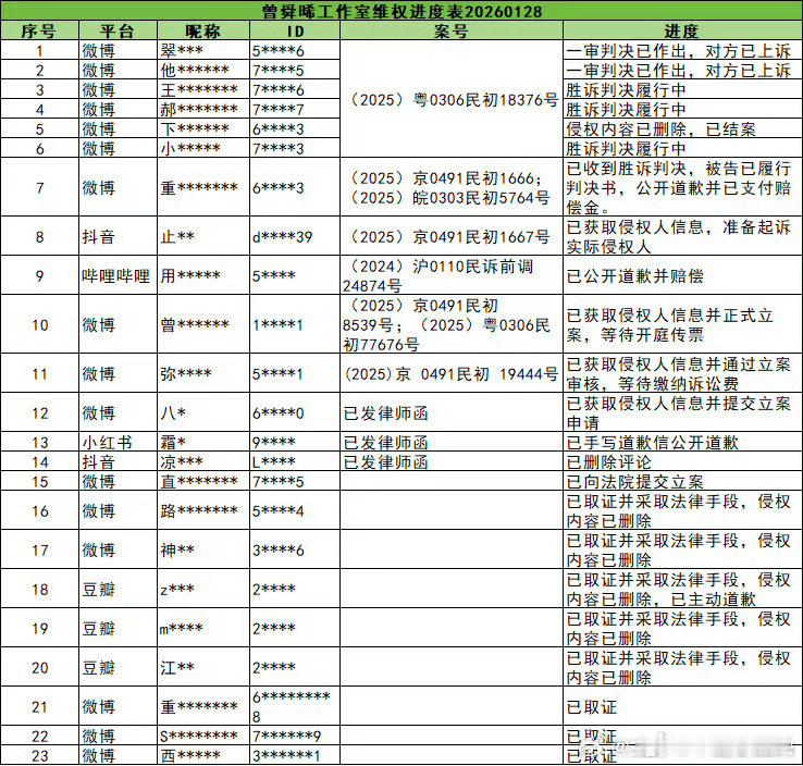 曾舜晞全平台告黑最新进展来啦!好多眼熟的id,支持小曾合理合法维权!!