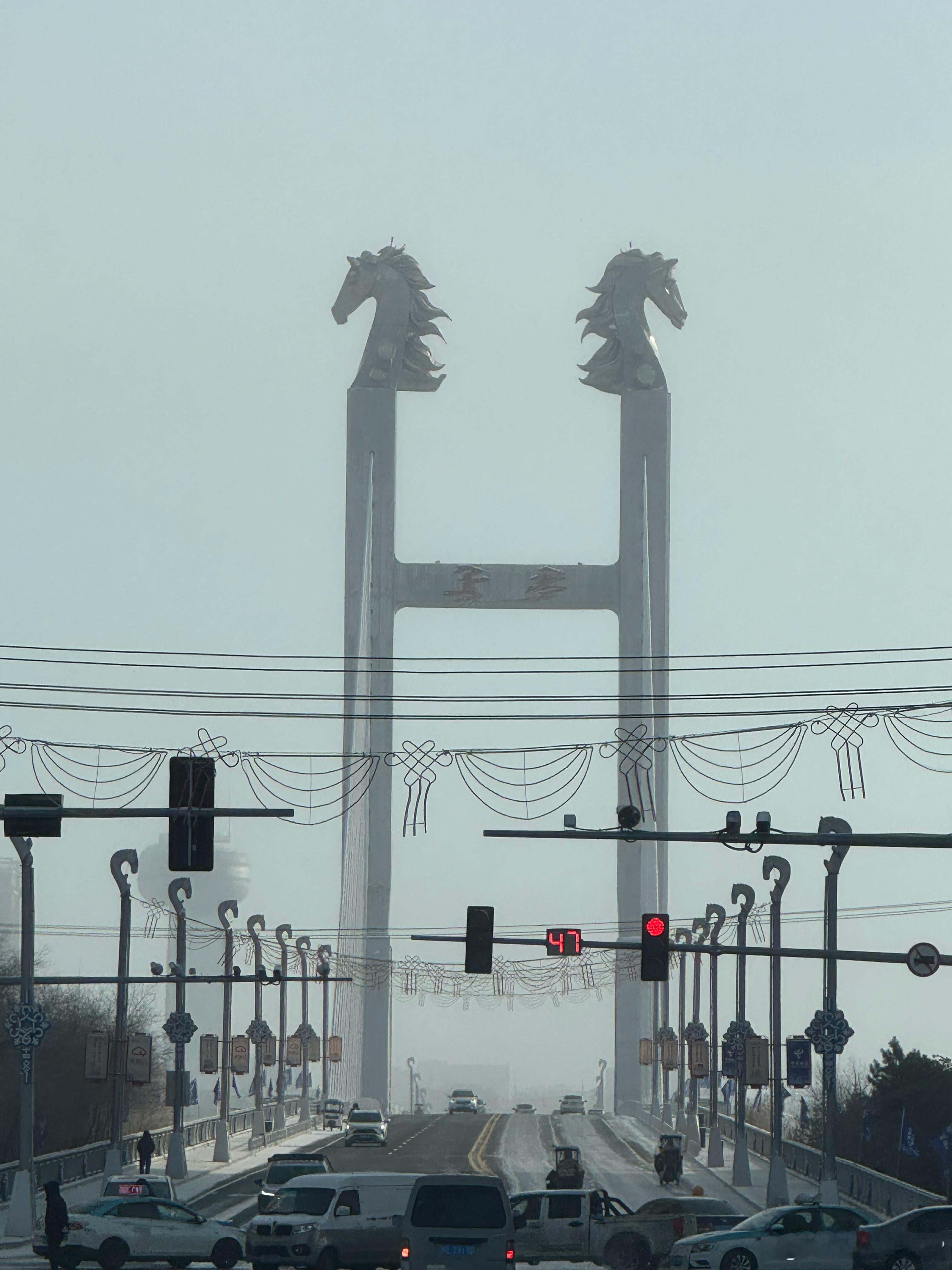海拉尔哈萨尔大桥,上面就是马头琴的造型,应景呼伦贝尔·哈萨尔大桥