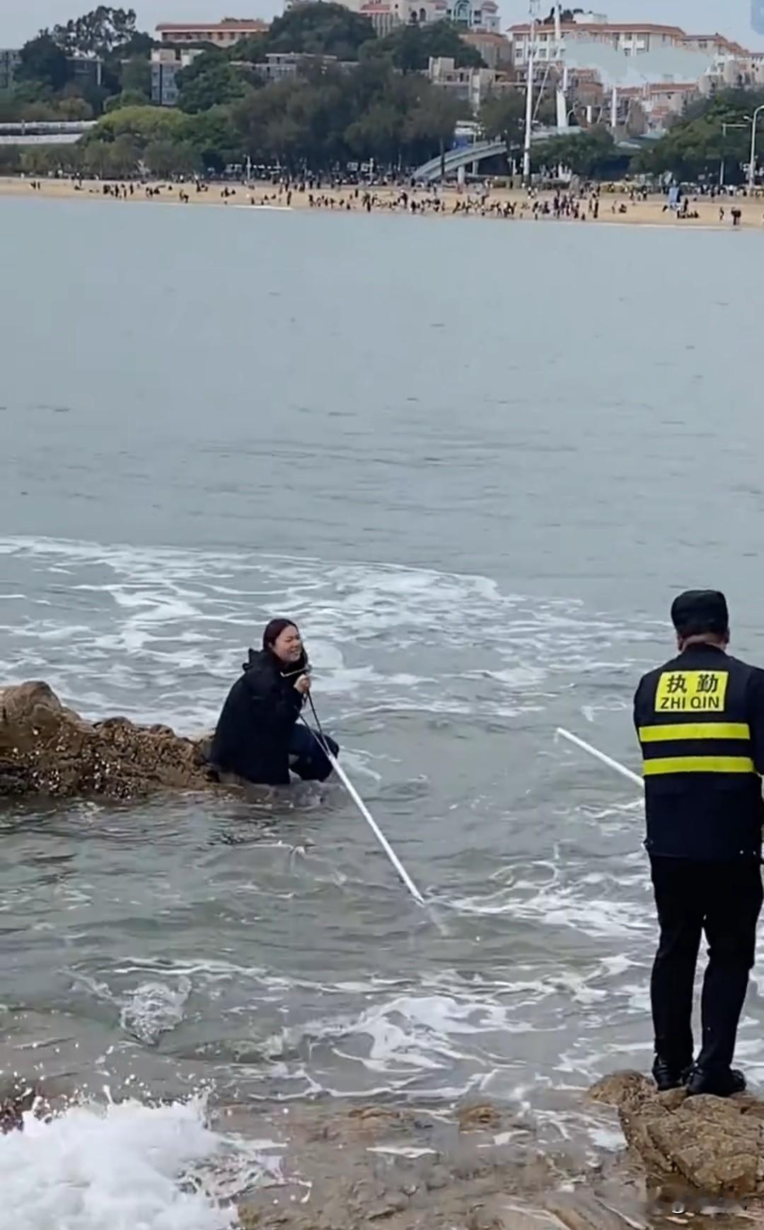 两名女子站在海边礁石上拍照,没料想海水突然间涨了起来,其中一人趁着涨潮幅度不大,跌跌撞撞地走到了安全的对岸。 另外一人却选择待在礁石上等待救援。 没过多久,救援人员来了。 女子一看,顿时傻眼了,可能在她想象中,救援人员应该是穿着救生衣,坐着汽艇,火急火燎地赶来。 没想到只来了一个人,而且还是走着过来,没坐什么摩托艇,救援工具也只是一根带弯钩的铁杆。 女子的心凉了半截:“就靠这根铁杆啊。” “对呀,有什么问题吗?” 女子畏畏缩缩地站在礁石上,半天都不动。 救援人员不耐烦了:“你到底过不过来呀,不过来我就走了。” 没有办法,女子只好鼓起勇气,一手提着鞋子,一手去抓伸过来的铁杆。 抓住铁杆刚一用力,令人无语的一幕出现了,铁杆竟然从中间脱开了。 拿着半截铁杆,女子简直要崩溃了,这下怎么办呢,总不能还指望救援人员过来背她吧,那样更不安全。 又犹犹豫豫了半天,再拖下去,天都要黑了。 女子没有办法,只好重新鼓起勇气。趁着浪头稍稍平复,拄着铁杆,深一脚浅一脚地趟着水,总算有惊无险地走了过来。 真服了这个女的,对大自然没有一点敬畏之心,不知道涨潮有多厉害,磨磨唧唧了半天,有那点磨叽的时间,早就走过来了。 没有公主命,却得了公主病,这次算是万幸,下次还会有这么好的运气吗?