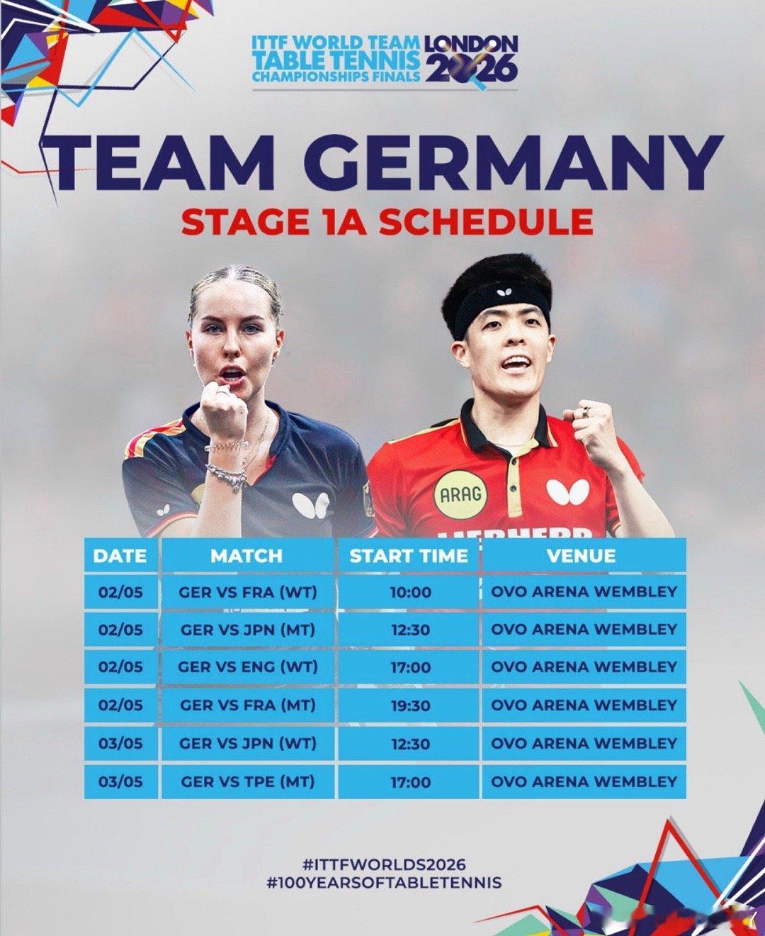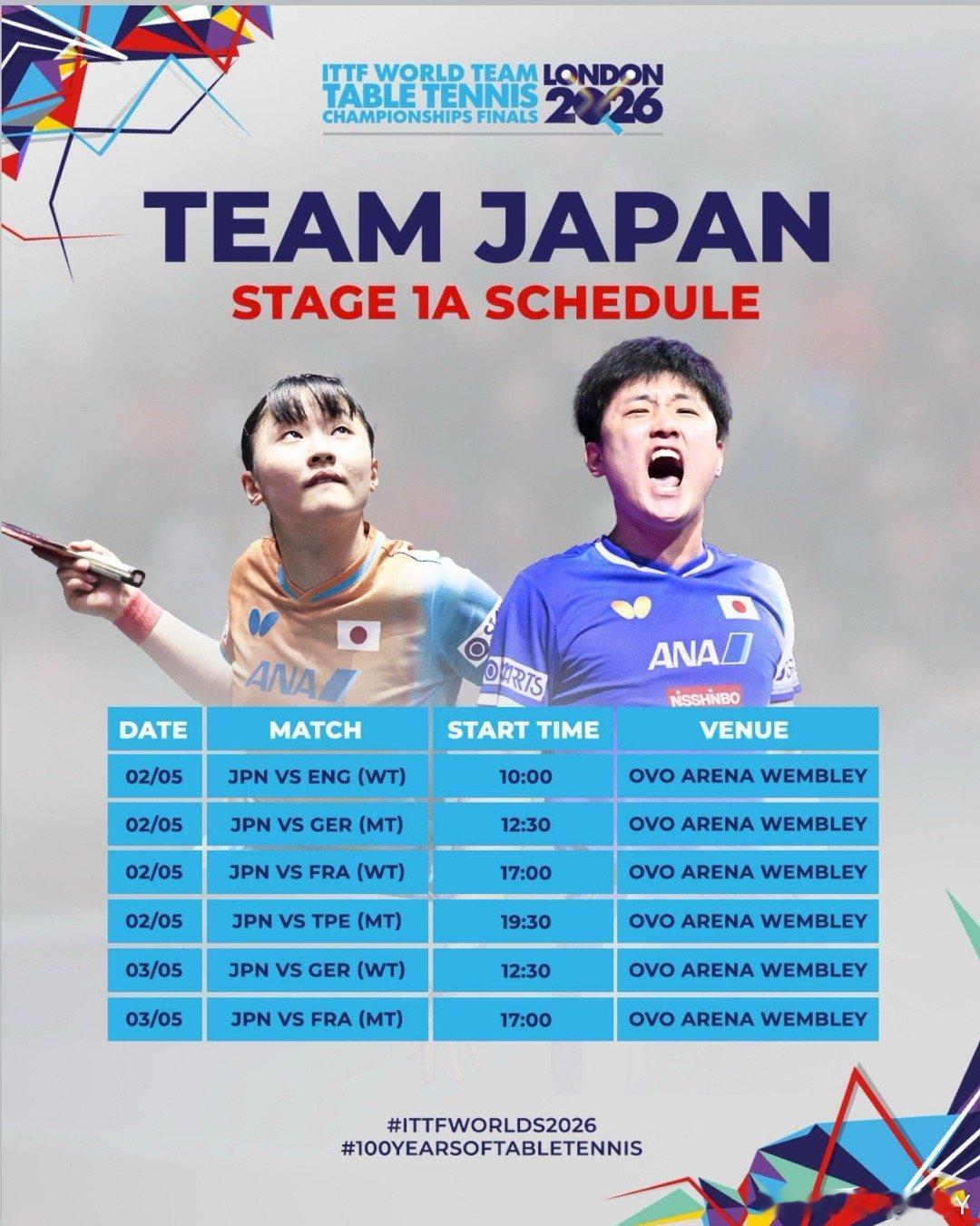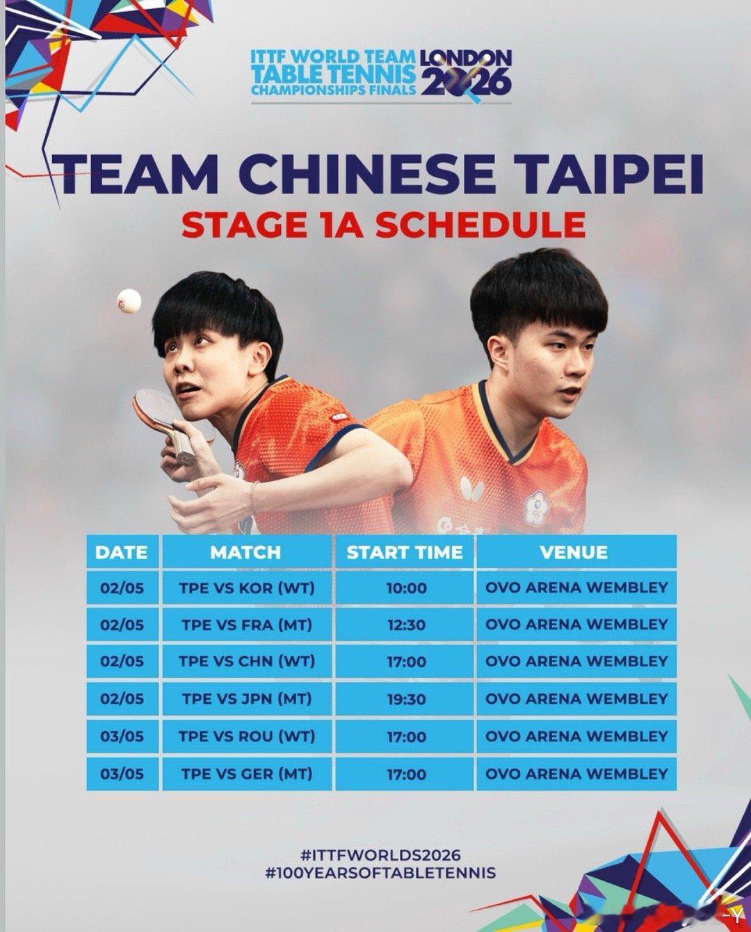2026伦敦世乒赛·1A组其他协会重要赛事男子团体5.219:30 T2 日本VS德国19:30 T3 瑞典VS韩国19:30 T4 法国VS中国台北5.302:30 T2 日本VS中国台北02:30 T3 法国VS德国19:30 T3 法国VS日本19:30 T4 德国VS日本女子团体5.2 17:00 T3韩国VS中国台北5.300:00 T3 韩国VS罗马尼亚19:30 T2 日本VS德国19:30 T4 中国台北VS罗马尼亚