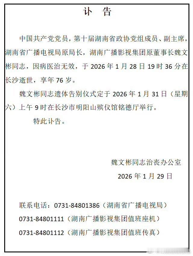 湖南广电原局长魏文彬逝世湖南卫视在他手里成长起来的。