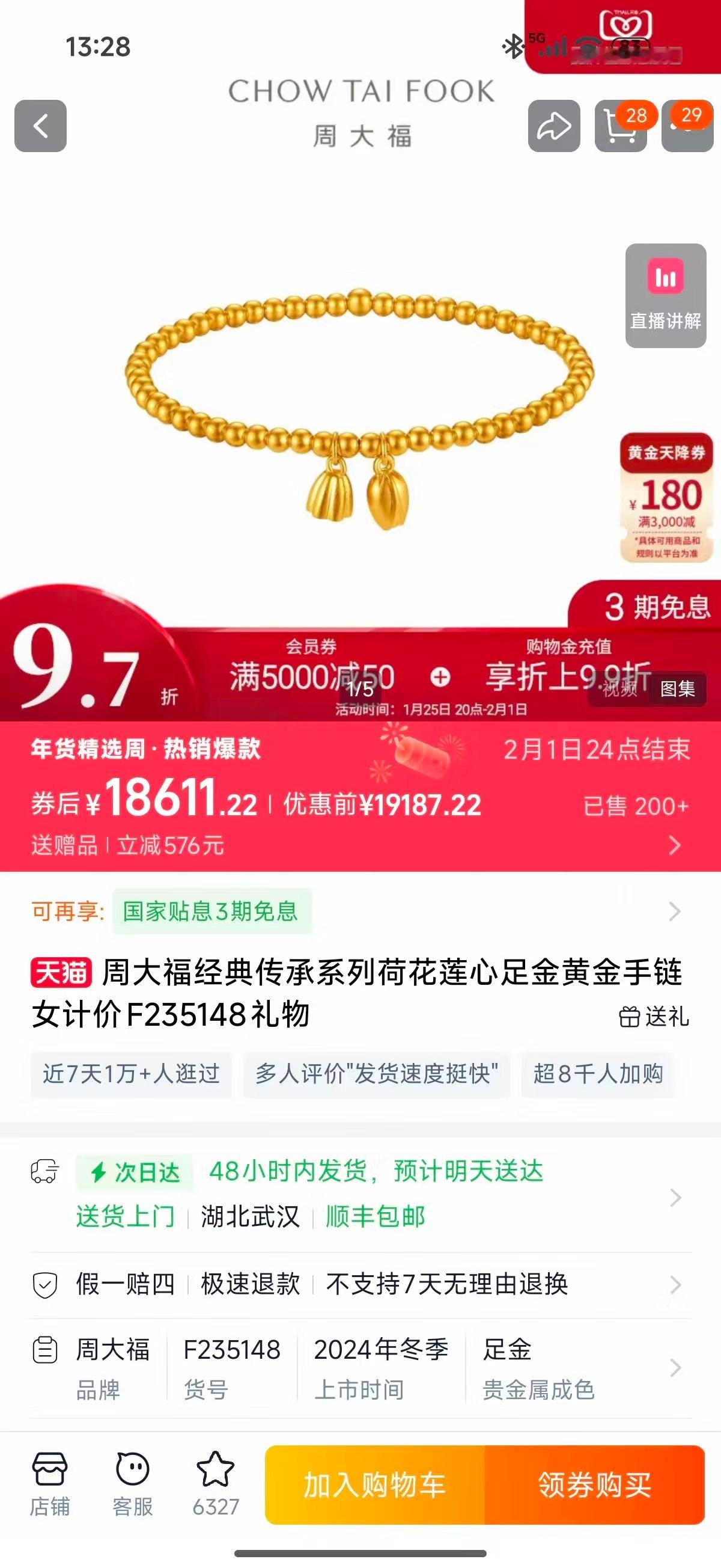 金饰克价涨至1708元22年结婚的时候买的手链,当年才几千块,现在1万8