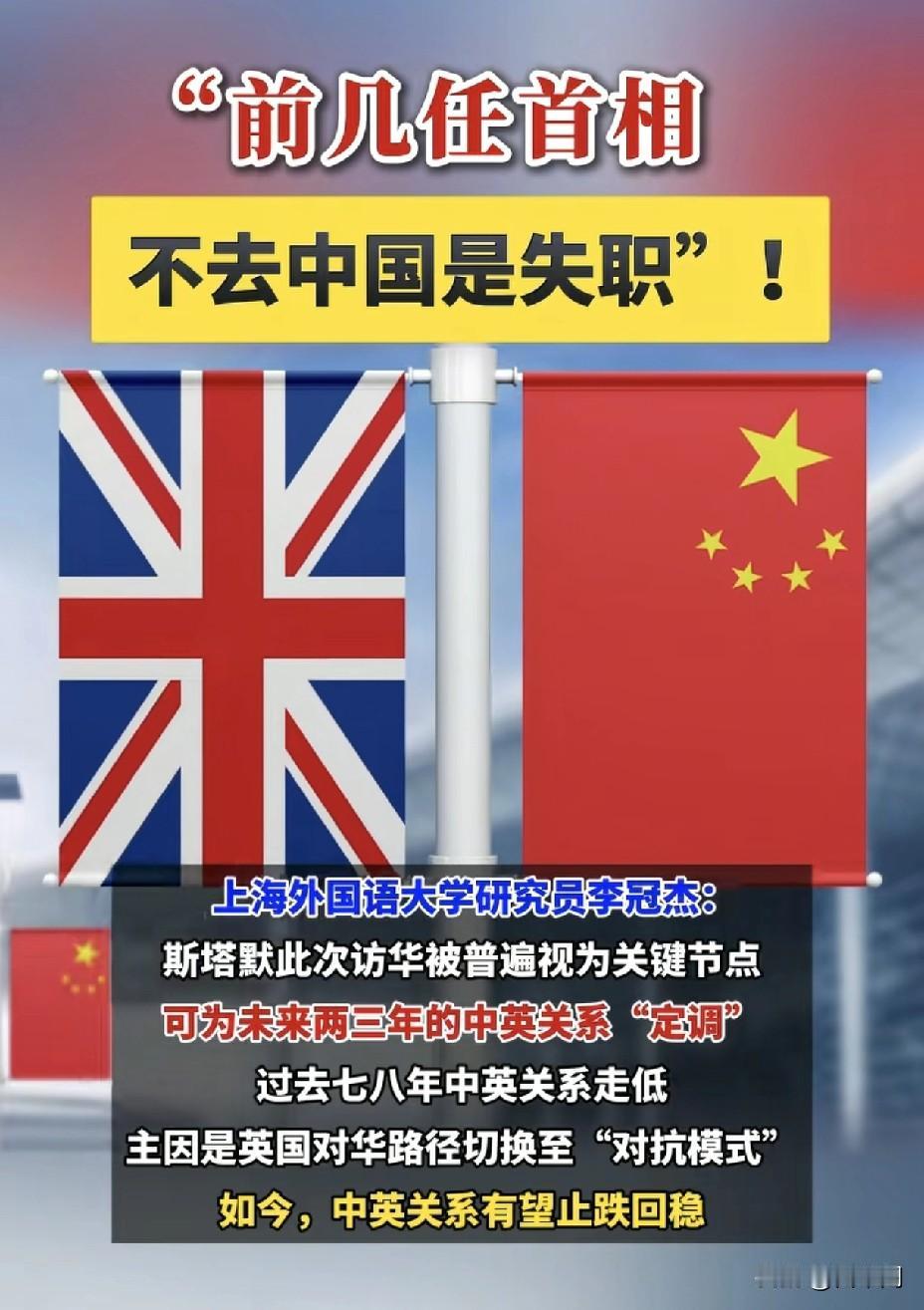 英国首相硬气表态: 必须与中国接触,这是国家利益! 英国首相斯塔默在访华前夕摊牌 直言与中国保持接触对英国民众至关重要 这是时隔8年,英国首相的首次访华 一场外交破冰之旅引发全球关注 三大核心信号,看懂英国态度大转变: 1️⃣ 经贸利益是硬道理:中国是英国第三大贸易伙伴, 支撑着37万个英国就业岗位。 无视中国,只会让英国“更贫穷、更不安全”。 2️⃣ 寻求“务实合作”:斯塔默此行由数十位企业高管陪同, 旨在为英国金融、汽车等行业争取更大市场准入。 关键词就是务实。 3️⃣ 政策转向清晰:新政府明确要摆脱前几年对华关系的 “冰河时代” , 制定一套承认中国崛起现实的新政策。 看看各方的盘算与反应: ✅ 英国逻辑:在全球不稳定加剧的背景下, 必须根据国家利益行事。 与中国在人工智能、 气候变化等议题上合作更符合英国需求。 ✅ 中方期待:中国外交部表示,愿以此访为契机, 增进政治互信,深化务实合作, 共同开启中英关系健康稳定发展的新篇章。 ✅ 国际视角:外媒分析, 在美国贸易保护主义和“不可靠盟友”形象背景下, 欧洲国家正寻求多元化伙伴关系以保护自身利益。 这是一场基于现实利益的战略校准 当“脱钩”不符合民生与就业 务实接触就成为唯一理性选择 中英关系的新篇章,正从这次访问开始书写 点赞看大国关系如何风云变幻! 关注看斯塔默此次访华能取得哪些实质性成果? 评论看你的预测!