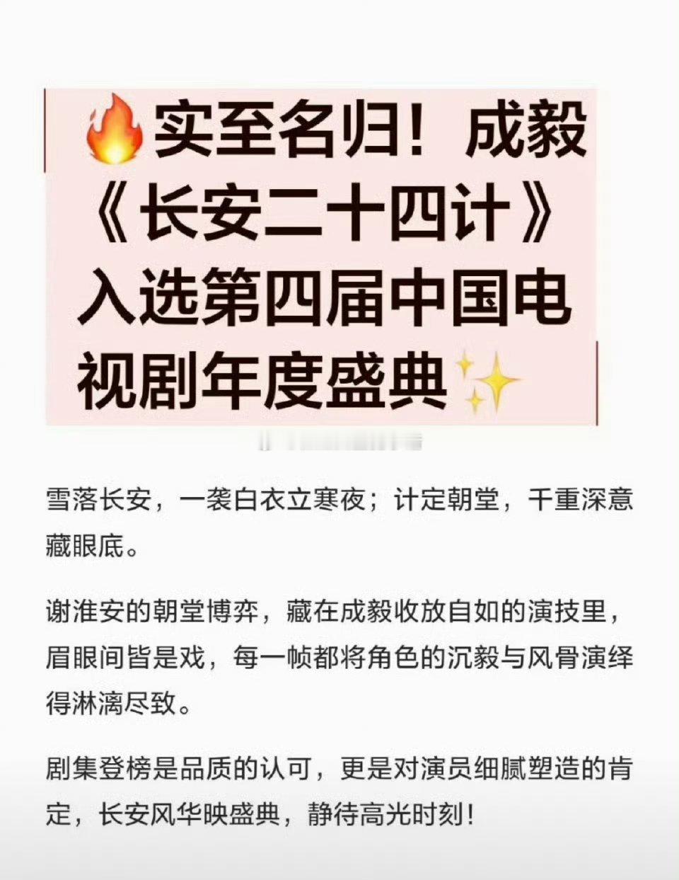 成毅长安二十四计入选第四届中国电视剧年度盛典!