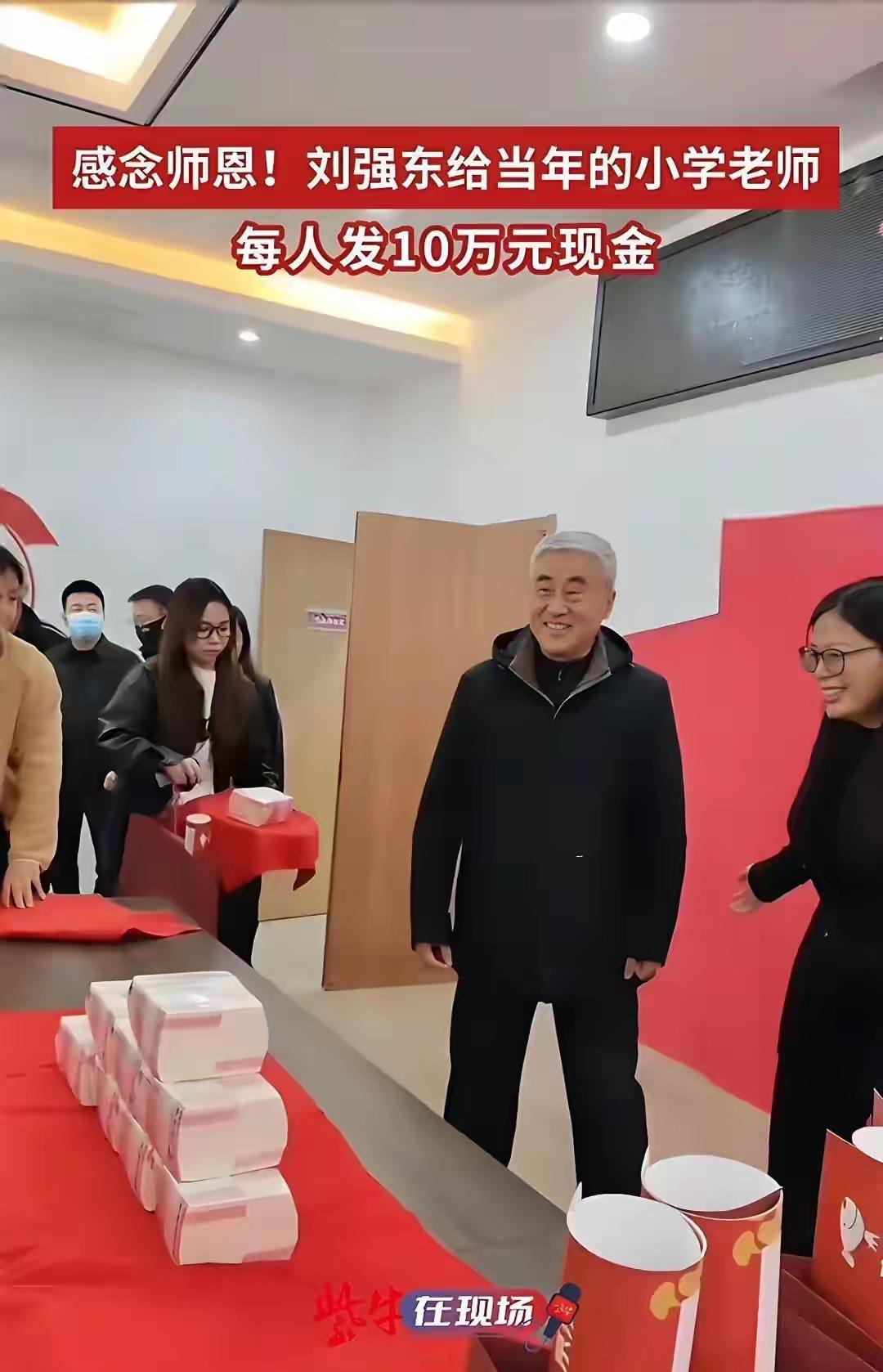 刘强东的运钞车开到光明村了! 照例全村60岁以上的老人,人人能领一万块钱现金,这次还给当年的小学老师,每人十万。这几天被刘强东给村里人发年货的视频刷屏了,看得人羡慕不已! 这份春节厚礼,60岁以上的老人优先领现金,除此之外,每家每户还能领足足30多种年货,男女老少的需求全考虑到了!能识别方言的老人大屏手机、男人爱喝的酒、女人的护肤品、小孩子的学习用品,样样都是实实在在的好东西。 看现场视频里,那些老人家个个笑得合不拢嘴。刘强东是真的做到了滴水之恩,当涌泉相报啊!刘强东