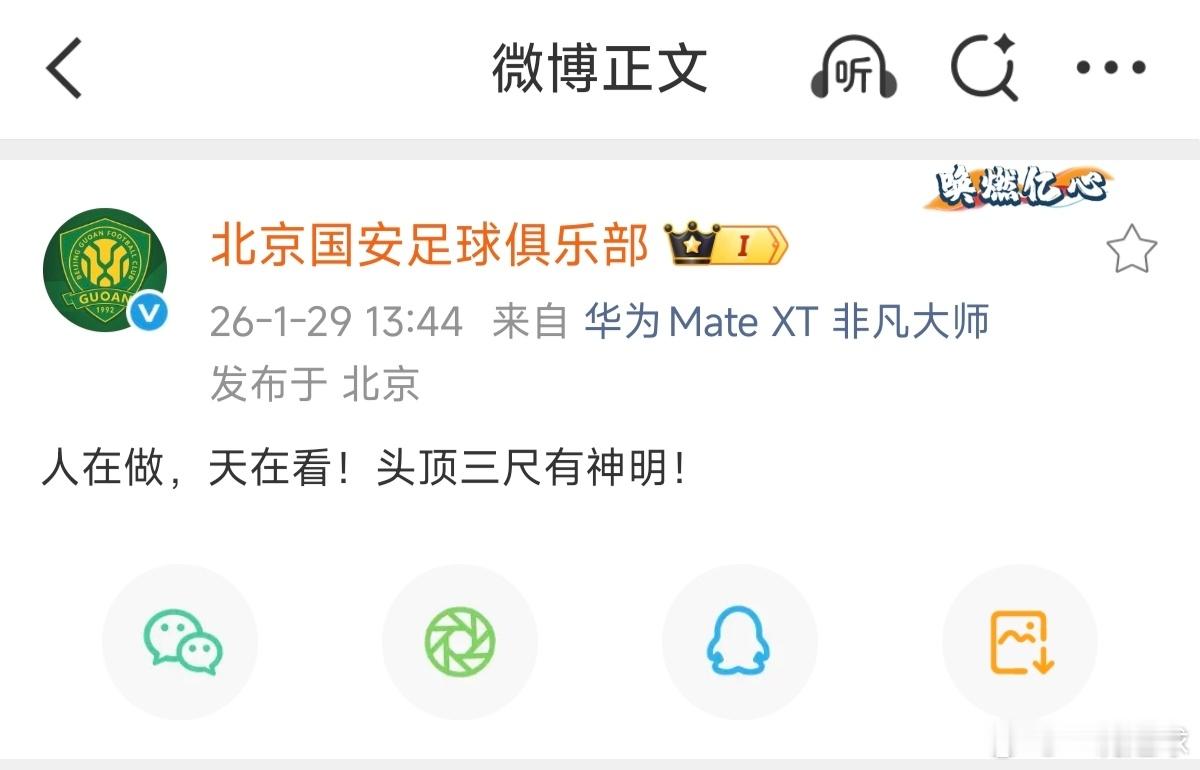 北京国安:“人在做,天在看!头顶三尺有神明!” 九家中超俱乐部被罚国安回应处罚北京国安新赛季被罚5分