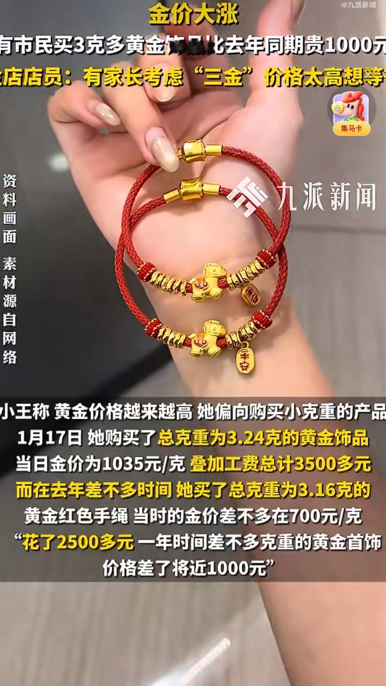 身边好多朋友都在聊结婚买三金的事儿,不少人都遇到了个扎心的情况——本来想等等看金价能不能降,结果越等越高,原本准备的三万预算,现在连个基础款都凑不齐了,这事儿听着像段子,可背后全是普通家庭的无奈。就说郑州有对小情侣,2025年初就挑好了三金,戒指、项链、手镯加起来三万多,当时想着金价波动大,先观望观望,结果这一观望,直接等来了金价“坐火箭”,到2026年初要办婚礼时,同样的克重,价格直接翻到六万,小两口直呼肠子都悔青了,更夸张的是,有位准新郎本来计划用三万买三金,现在光一个古法金手镯就要四万多,工费比金价还高,他苦笑着说:“这哪是买首饰,简直是买‘黄金债’。” 金价为啥涨得这么猛?说白了是多重因素叠加。国际上,地缘冲突不断,美国又搞贸易政策,大家心里都没底,避险情绪一高,黄金就成了香饽饽,国内呢,央行连续几年增持黄金储备,各大银行也在推黄金理财产品,市场需求蹭蹭往上涨,更关键的是,黄金开采成本也在涨,矿企为了保利润,只能跟着提价,这些因素搅在一起,金价就像脱缰的野马,一路狂奔。 金价一涨,最受伤的就是普通家庭,以前三金是结婚的“标配”,现在却成了“奢侈品”。有位月薪八千的准新郎算过账,三金支出占结婚预算的比例,从原来的15%飙到了50%,原本计划蜜月去欧洲,现在只能改成国内游,更现实的是,有些家庭为了凑钱买三金,不得不推迟买房计划,或者压缩婚礼规模,婚姻的幸福感都被金价“稀释”了,面对这种情况,年轻人也在想办法应对有人选择“减配”,把实心手镯换成细链,三金变两金,甚至只保留素圈戒指;有人盯上“平替”,比如金包银饰品,外观和足金差不多,价格却只有十分之一,虽然不保值,但婚礼上戴着也体面;还有人去深圳水贝这样的黄金批发市场,那里的工费比品牌店低一半,同样预算能多买10%的克重,更有意思的是,现在连道具黄金都火了,一套仿真三金只要三百多,虽然只能拍照用,但至少能省下真金白银。 其实说到底,婚姻的幸福从来不是靠黄金的克重决定的,老一辈人结婚时,可能连三金都没有,但夫妻同心,日子照样过得红火,现在金价高,咱们可以灵活应对,别让“面子”压垮了“里子”。毕竟,两个人携手过日子,比戴多少黄金都珍贵。三金彩礼 婚嫁三金 婚三金五金 结婚黄金 有家庭买三金价格越等越高 事件来源:九派新闻