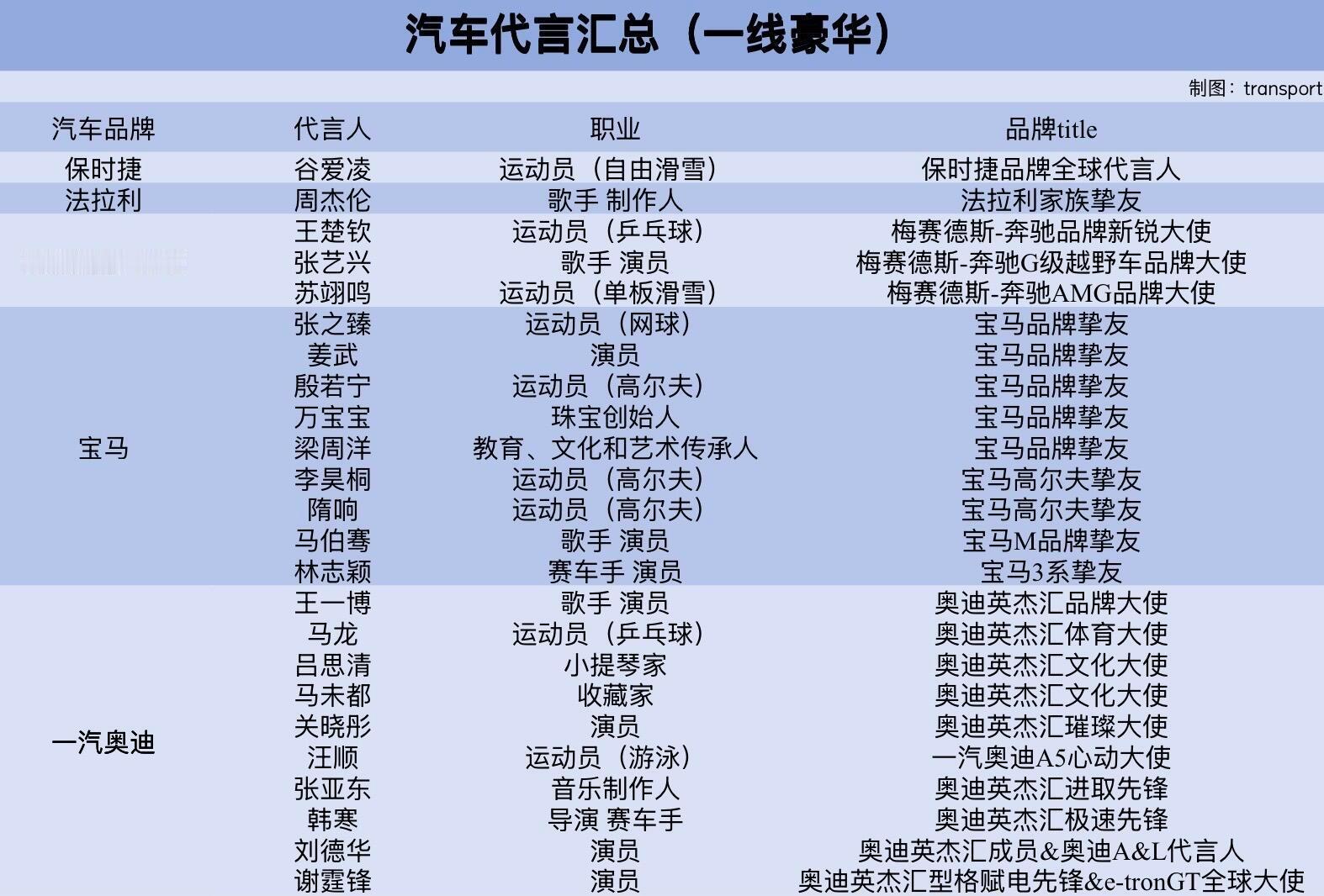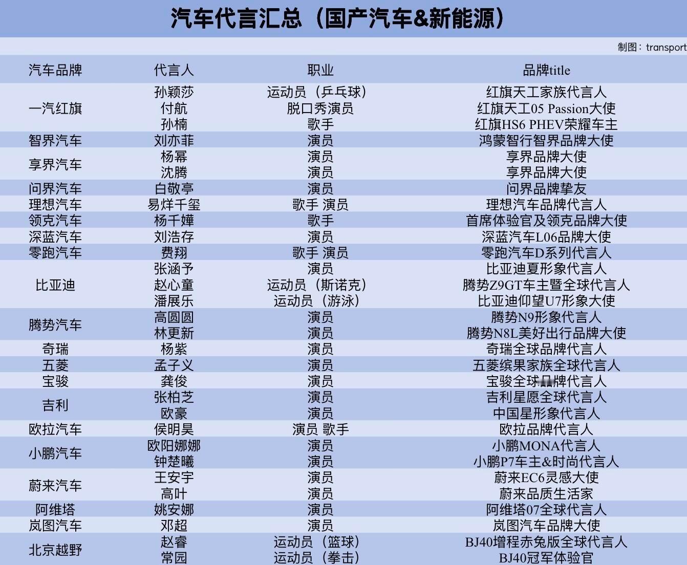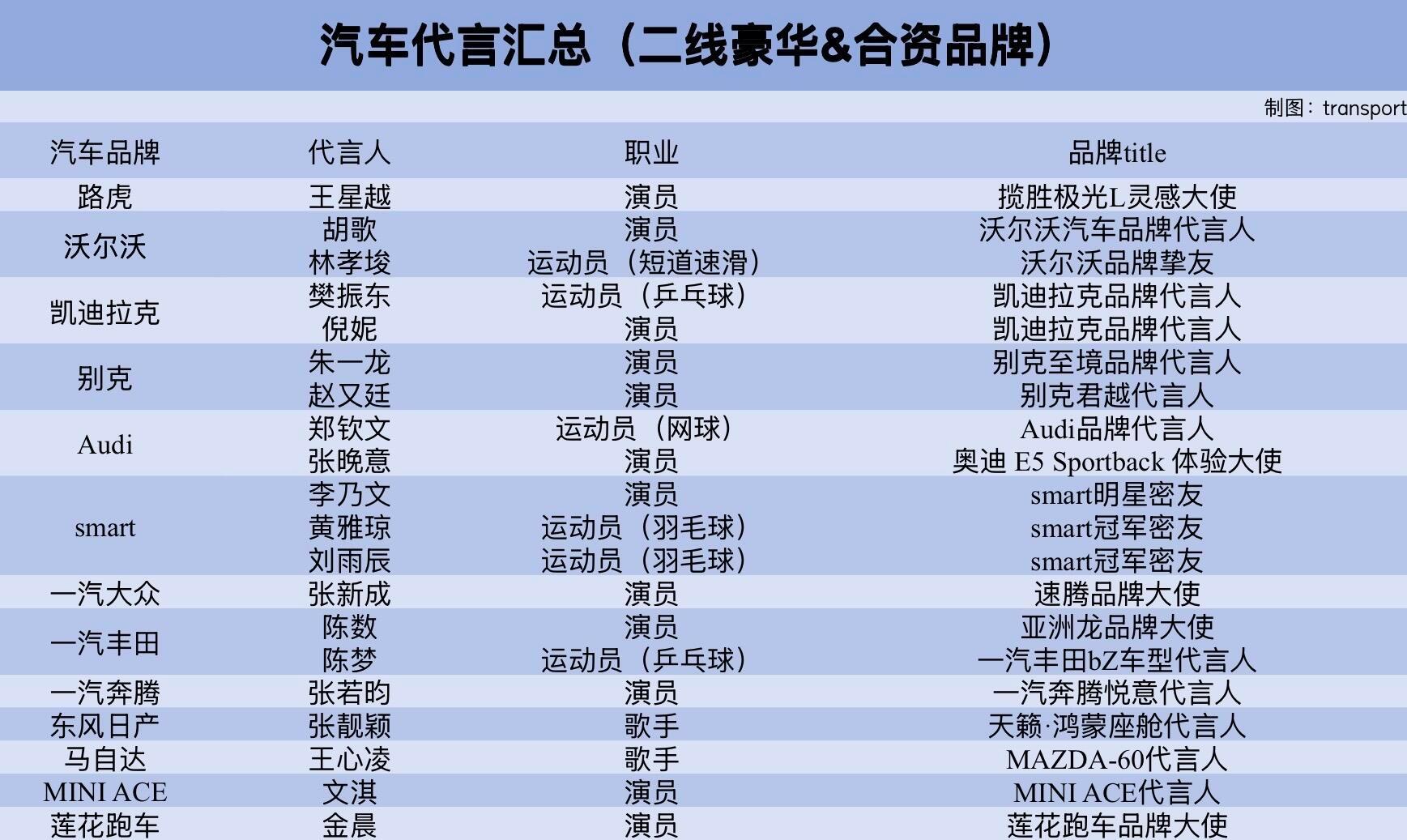 汽车代言更新汇总