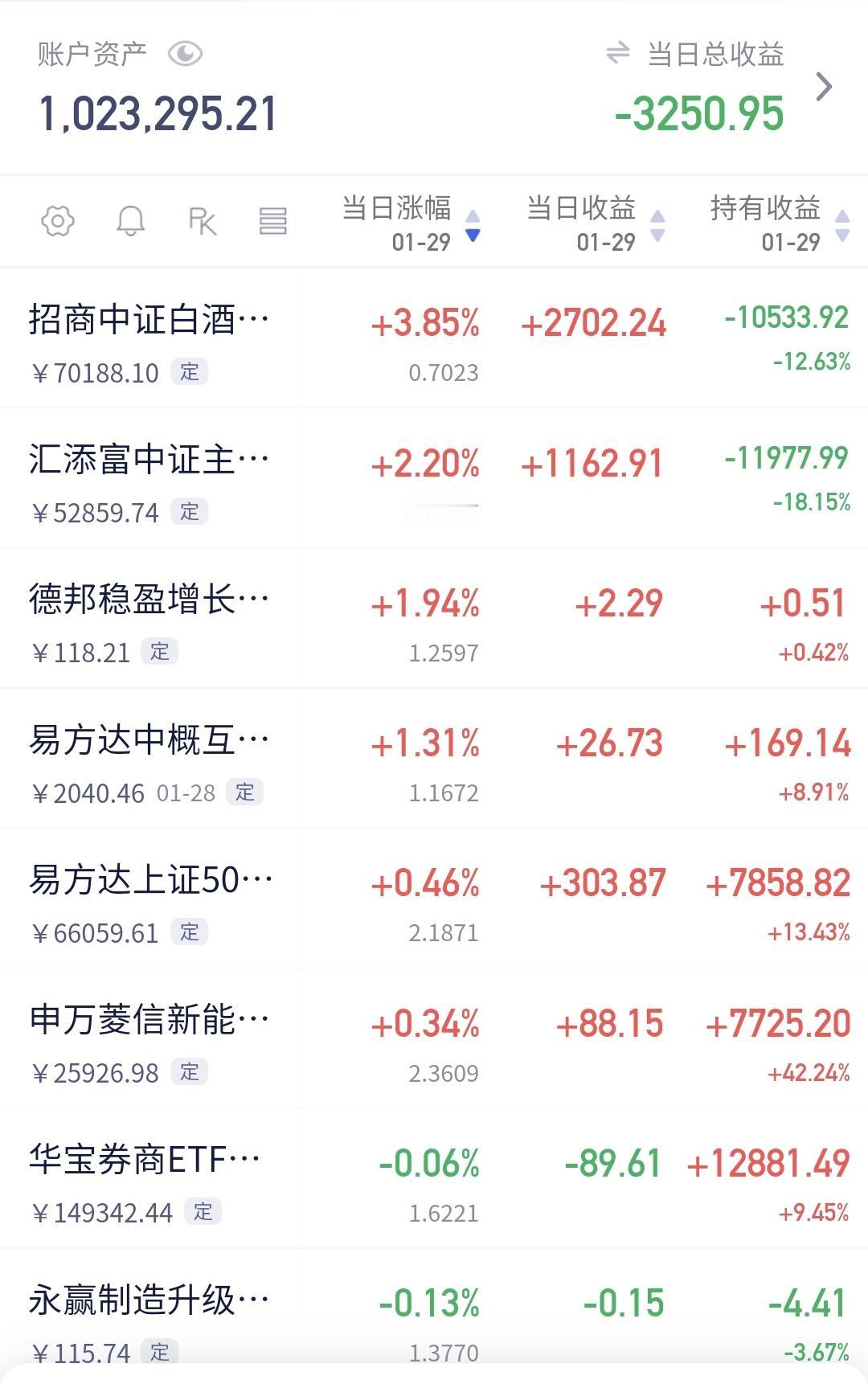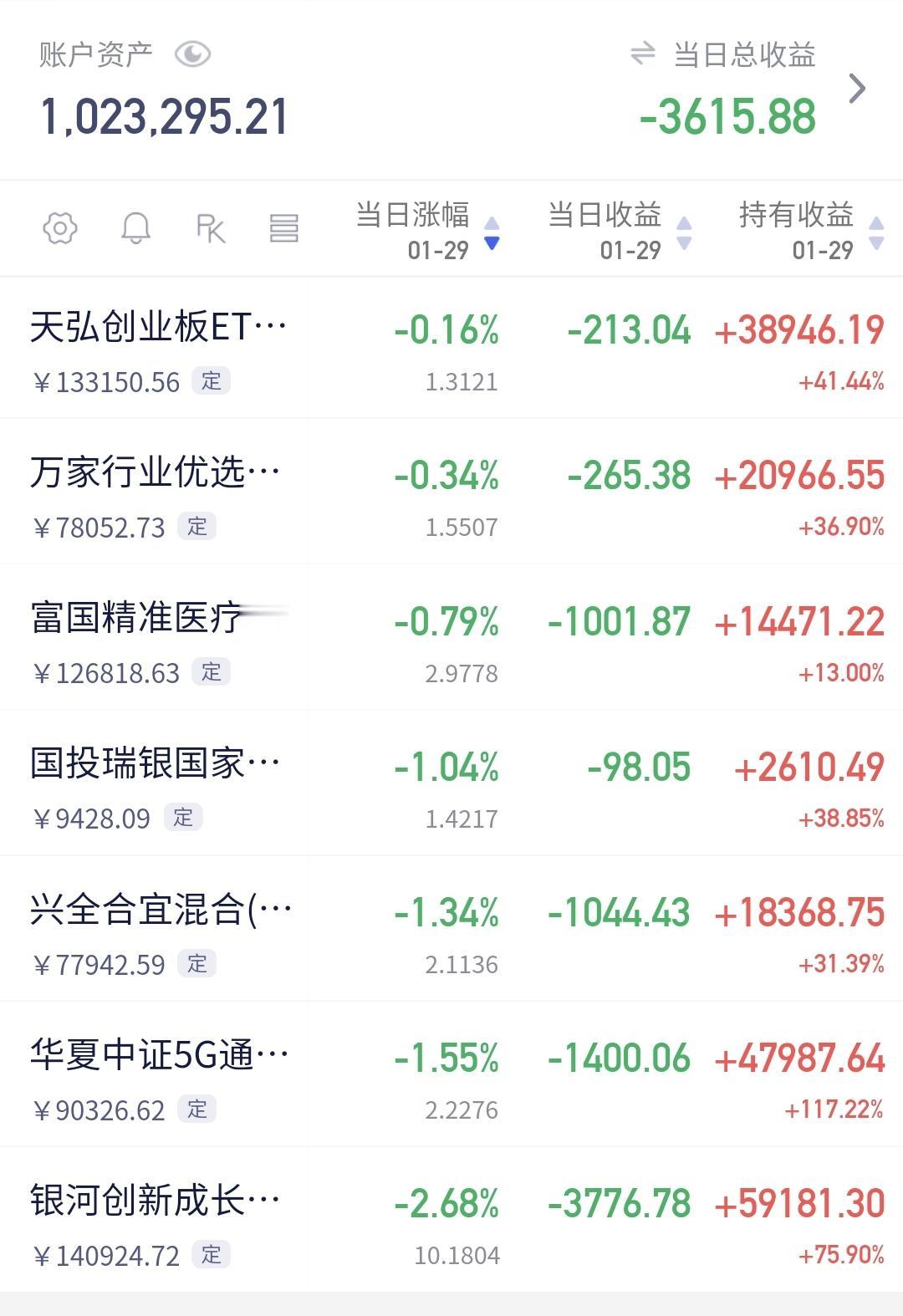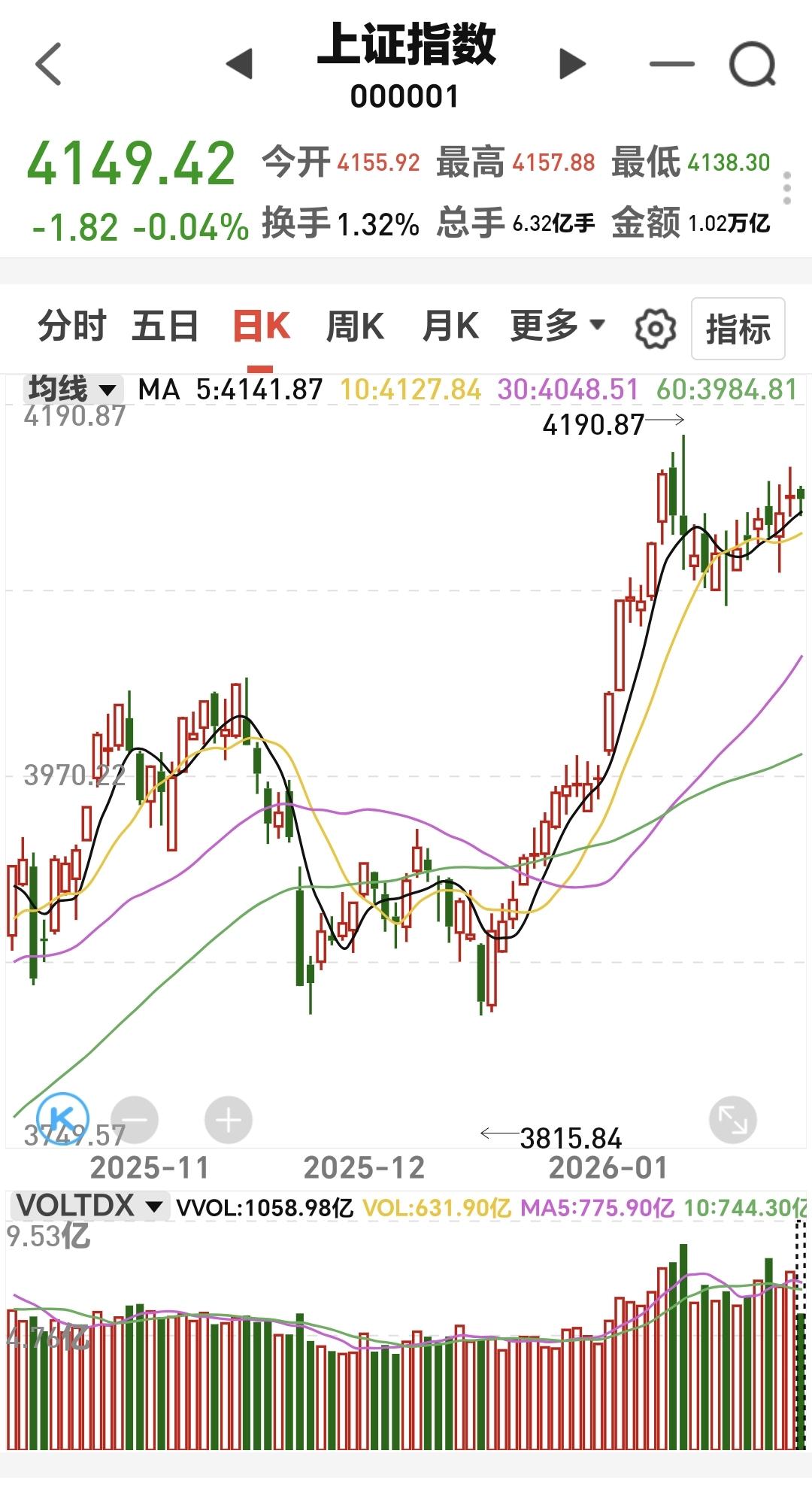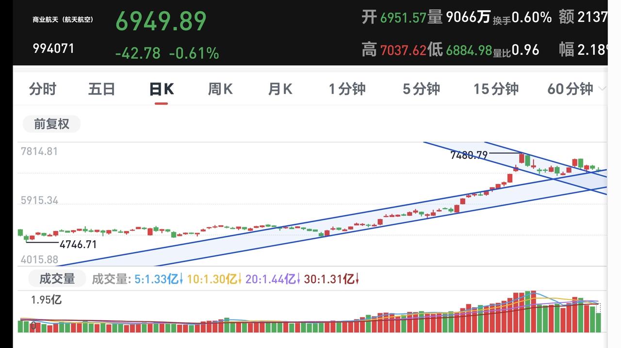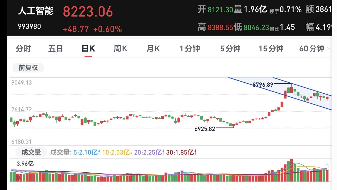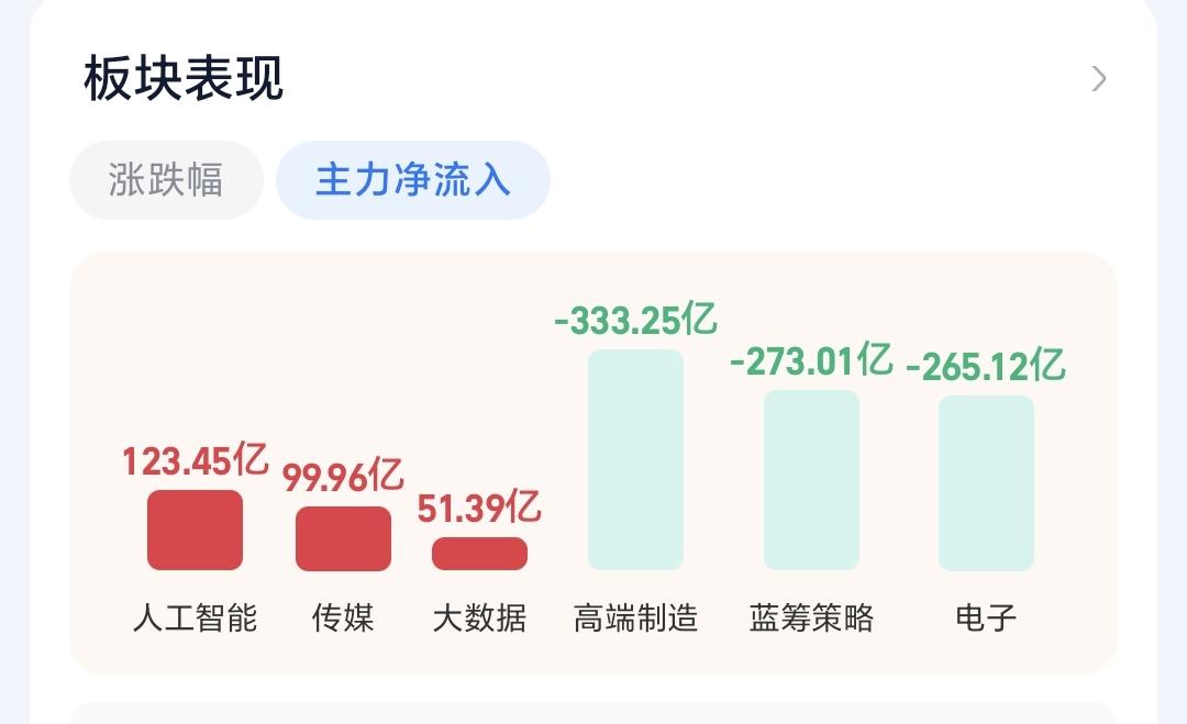 基金:什么情况下会进行再一次止盈 下午开盘以后小幅度震荡,三大指数都是小跌,创业板指下跌了0.19%,盘中点位3317点,上证指数下跌了0.02%,盘中点位4150点。 整个股票市场,上涨2532家,下跌2803家,涨停63家,跌停17家,上涨家数少于下跌家数。 持有的基金中,盘中估值上涨幅度最大的三个板块是:白酒板块,大消费板块,AI应用板块,估值下跌幅度最大的三个板块是:芯片半导体板块,5G板块,兴全合宜,估值整体亏损了3250元。 整个基金市场,上涨11673家,下跌7776家,上涨幅度超过5%的39家,没有下跌幅度超过5%的基金。 图9是今天基金的上涨排行榜,图10是今天基金的下跌排行榜,图11是ETF上涨幅度排行榜,图12是今天基金的加仓榜,图13是今天基金的减仓榜。 1:现在黄色线还是在蓝色线上方,但两条线之间的敞口很小,基本上就是纠缠在一起,继续观察两条线位置会不会有变化,继续观察黄色线会不会下穿蓝色线,来到蓝色线的下方。 2:现在五天线位置是4141点,盘中点位4149点,还是在五天线之上的震荡,收盘之前观察是收在五天线之上,还是五天线之下,五天线的得失是短线强弱的分水岭。 3:现在两市累计成交22494亿,相比于昨天同期放量了5%,主力资金净流出535亿,有这样的成交量,大幅度下跌的可能性就不大,有这样的成交量,即使阶段性调整来了,也不会有很大的幅度,后面一段时间观察,能不能继续保持温和放量,如果见到有急剧缩量的交易日,还是需要注意的。 4:看下面的截图14,这是主力资金进出板块的情况,主力资金净流入最多的三个板块是:人工智能板块,传媒板块,大数据板块,主力资金净流出最多的三个板块是:高端制造板块,蓝筹策略板块,电子板块。 5:看下面的截图15,这是今天主力资金净流入最多的人工智能板块日K线图,图中我画了两条倾斜向下的斜线,这是人工智能板块日线级别短期下跌通道,今天的上涨并没有能够突破这个短线下跌通道的上轨线,这个板块短期还是处于日线级别下跌趋势中。 看下面的截图16,这是人工智能板块周K线图,现在的位置处于这个上涨通道中,近期的横盘震荡并没有能够改变这个上涨趋势,长线持有的人可以继续持有,这个上涨通道的下轨线,是长线持有者的持有条件。 6:看下面的地图17,这是商业航天板块日K线图,前段时间上涨突破了这个上涨通道的上轨线,最近的回落又来到了这个上涨通道上轨线附近,这个板块日线级别还是处于上涨趋势中,持有的人可以继续持有,这个上涨通道下轨线是短线持有者的持有条件。 看下面的截图18,这是商业航天板块周K线图,前段时间上涨突破了这个上涨通道的上轨线,最近是在上涨通道上轨线上方震荡,最近的震荡并没有改变这个板块周线级别的上涨趋势,长线持有者以这个上涨通道的下轨线作为持有条件。 今天的市场就是一个震荡的走势,震荡的幅度不大,并没有进行方向的选择,如果最近缓慢上涨到前高4190点附近,进行再一次止盈的可能性很大,但如果是快速上涨到前高4190点附近,止盈的时间节点就会往后推移。 今天究竟应该怎么办?我会在评论区留言。 花一秒钟点赞,花30秒钟评论是对我最大的支持,但很多人就是连31秒钟都不肯花,也就看出他投资是很没有耐心的。
