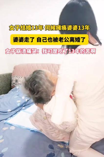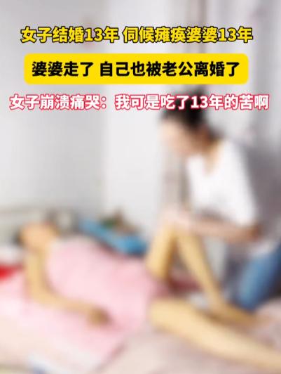 “卸磨杀驴!”一女子伺候瘫痪婆婆13年,每天喂饭擦身、端屎端尿,谁知,婆婆刚去世,丈夫就提出了离婚,女子崩溃痛哭:“我可是吃了13年的苦啊!” 2026年1月的乡村,凛冬的寒风卷着纸钱灰烬掠过小院,刚结束婆婆葬礼的女子,还没从连日的疲惫与悲伤中缓过神,就被丈夫抛出的一句话,冻僵了全身。 这场持续13年的贴身照料,曾是邻里口中的孝行典范,最终却沦为婚姻破裂的注脚,让这个耗尽青春的女人,在中年的门槛上,遭遇了最猝不及防的背叛。 时间拉回2013年,彼时她在小区超市做收银员,丈夫在工地干瓦工,儿子刚踏入小学,一家三口的小日子虽不宽裕,却也满是烟火气。 变故发生在一个寻常午后,独自居住在老家的婆婆去菜园摘菜,返程时不慎失足坠入路边水沟。 万幸被路过村民及时救起送医,却还是因伤势过重落下全身瘫痪的后遗症,从此丧失了生活自理能力。 公公早逝,丈夫又是独子,照料老人的重担无可避免地压在了这个小家庭身上。 夫妻俩起初想请专业护工,可核算下来,护工月薪远超两人的工资总和,长期雇佣根本无力承担。 丈夫常年在工地奔波,体力消耗巨大,早出晚归间根本抽不出时间照料老人。 看着病床上毫无知觉的婆婆,女子沉默良久,最终主动递交了辞职信,收拾行囊搬到了丈夫老家,扛起了全职照料婆婆的责任。 没人能真正体会,这13年她是如何在日复一日的琐碎与辛劳中熬过的。 乡村的凌晨五点格外清冷,女子每天准时起身,先烧好温水给婆婆擦拭面部、清洁口腔,再慢火熬煮小米粥,待粥品软烂后,将青菜剁成细泥混入其中,小心翼翼地喂给婆婆。 由于婆婆吞咽功能受损,每一勺都要等老人完全咽下才能继续,一顿早饭往往要耗费近一个小时,等她忙完收拾妥当,自己的那份早已凉透,只能匆匆扒几口垫肚子。 为了预防褥疮,她特意定了循环闹钟,每两个小时就帮婆婆翻身一次,早晚还会各花半小时为老人按摩四肢,促进血液循环。 13年里,无论酷暑寒冬、身体不适,这个习惯从未间断。 老人大小便无法自控,尿不湿和隔尿垫成了家中必备品,遇上拉肚子弄脏衣物被褥,哪怕是盛夏酷暑,女子也会立刻换洗清理,始终让老人保持干净清爽。 更难开口的是老人的便秘问题,开塞露失效时,她只能戴上手套亲手帮忙疏通,即便弄得满手污秽,也从未有过半句抱怨。 为了全身心照料婆婆,女子几乎割裂了自己原有的生活。 儿子的家长会,她只能拜托老师录制视频,错过孩子成长的诸多瞬间;逢年过节的亲友聚会,她从不参与,就连回娘家探望父母,也只能匆匆停留半小时就赶回家,生怕婆婆出现意外。 常年浸泡在温水与洗涤剂中,她的双手早已失去往日的纤细白皙,冬天布满裂口、渗出血丝,夏天则被泡得发白起皱。 长期弯腰照料老人,还让她患上了严重的腰肌劳损,每逢阴雨天,腰部疼痛难忍,连起身都格外困难,四十出头的年纪,头发已花白大半,眼角皱纹堆叠,比同龄人苍老了不止一轮。 最初的日子里,丈夫还会偶尔搭把手,回家后问问老人的状况,给忙碌的女子递上一杯热水。 可这份温情渐渐被时间冲淡,丈夫回家的时间越来越晚,有时甚至彻夜不归,问及原因,只以工地赶工、宿舍暂住为由搪塞。 他对女子的辛劳愈发漠视,将她的付出视作理所当然,即便女子偶尔累到极致流露抱怨,也只换来一句敷衍的“忍忍就好”,或是干脆转身回避。 唯有邻里乡亲看在眼里,每次路过串门,都忍不住夸赞女子孝顺懂事,全村人都认可这个难得的好媳妇,这些认可,成了支撑女子走下去的唯一精神慰藉。 她总盼着,等婆婆百年之后,夫妻俩就能重拾二人世界,日子总会好起来,可这份期盼,终究成了一场自我感动。 2026年1月,婆婆安详离世,女子忙前忙后打理完葬礼事宜,身心俱疲地坐在空荡荡的屋里,想着终于能卸下重担,却没想到丈夫竟平静地提出了离婚。 直到邻居们忍不住告知真相,女子才恍然大悟,丈夫早已在外有了新的感情,只是碍于婆婆在世,怕落得不孝的骂名,被街坊邻里指责,才一直迟迟未敢开口。 老人的离去,成了他摆脱这段婚姻最“合适”的时机。 积压13年的委屈、辛苦与不甘瞬间爆发,女子坐在婆婆曾经睡过的床边崩溃落泪,13年青春岁月,4700多个日夜的贴身照料,最终换来的却是一场精心算计的抛弃。 更让她绝望的是,13年与社会脱节,再加上学历有限,她早已没了重返职场的底气,未来的路该如何走,一片迷茫。 从35岁到48岁,女子把女人一生中最宝贵的13年,全都奉献给了婆家的琐碎与坚守。 孝顺老人本是子女的本分,但这份责任不该由一人独自承担,婚姻的存续,从来不是单方面的牺牲与付出,而是夫妻双方的并肩同行、彼此包容。