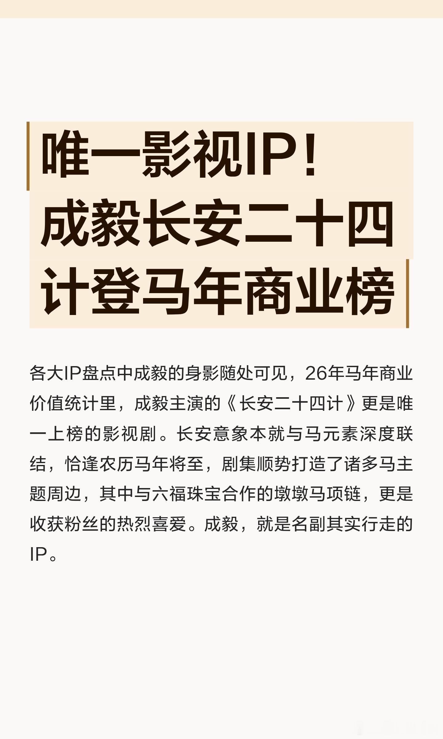 成毅商业价值号召力还是被低估了,《长安二十四计》作为唯一影视IP登上马年IP及相关商业形象统计中上榜