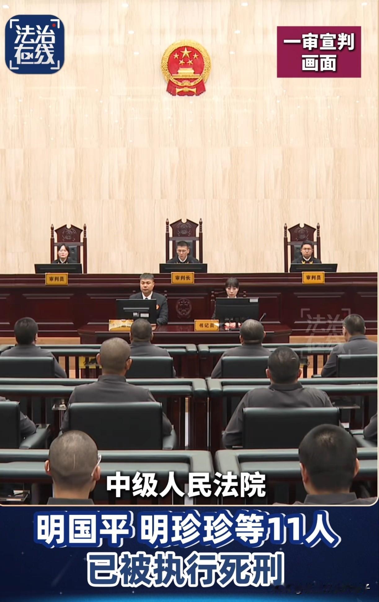 看央视法治在线报道,明家11人的犯罪集团已被执行死刑,从2023年底被抓获,2024年12月被公开审理,到2025年9月一审宣判,再到2026年1月执行死刑,历经2年多的时间,这个犯罪团伙今天终于被执行死刑,接下来就是白家了。 不知道大家注意没有,明珍珍好像比之前瘦了,但脸上的表情从始至终表示都没啥变化,从被捕移交审讯采访到判刑核准,一点恐惧都没有,全程都很冷漠甚至有一丝兴奋,不知道为啥?