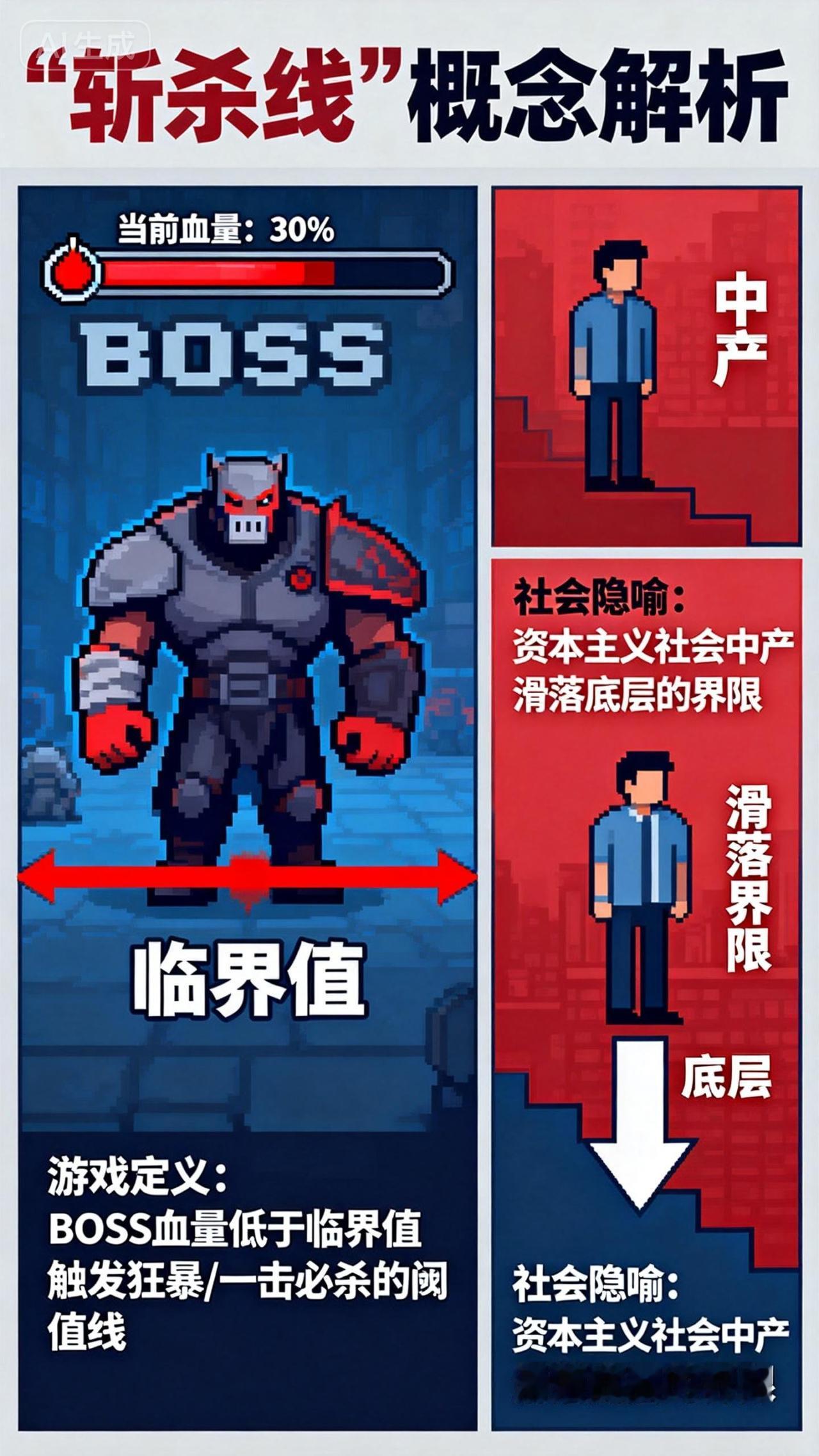 “斩杀线”一词源于游戏,指BOSS血量低于临界值时触发狂暴机制或玩家可发动一击必杀的阈值线,用来形容资本主义社会中产滑落到底层的界限,引发人们对阶层滑落的隐忧。 1. “电梯社会”的停滞:社会学家乌尔里希·贝克曾将德国形容为“电梯社会”,但如今这部引擎早已停滞,全球社会流动趋于僵化,内部充满焦虑与矛盾。 2. “大逃杀”模式的盛行:在“电梯社会”停滞的背景下,“大逃杀”模式的文艺作品屡见不鲜,这些作品接受世界的不透明性和无秩序性,不达标者即被淘汰。 3. AI技术发展的问题:AI技术的发展未如预期解放生产力,反而对工作者提出更高要求、增加工作负担,并渗透至生活监控中。高科技领域存在“创始人心态”,技术所有者和管理者掌握主导权,普通公众处于被动位置。 4. 全球化与AI的不均衡:AI的发展加剧了全球发展的不均衡,最稳定、高薪且理想的工作岗位多集中于美国,而最不稳定、低薪且高危的任务则被分配给全球南方国家。 5. 股东资本主义的影响:自1970年后,股东资本主义形成,企业利润分配优先考虑股东,导致劳动者职位稳定与收入保障受损。如沃尔玛提高员工工资却遭股东抛售股票,致股价大跌。 6. 对“斩杀线”现象的看法:美国财政部长贝森特称“斩杀线”是拜登政府留下的问题,但若无法避免收入从员工转移至高管和股东,以及AI等高新技术造成的不均,“斩杀线”对普通人来说并非遥不可及。
