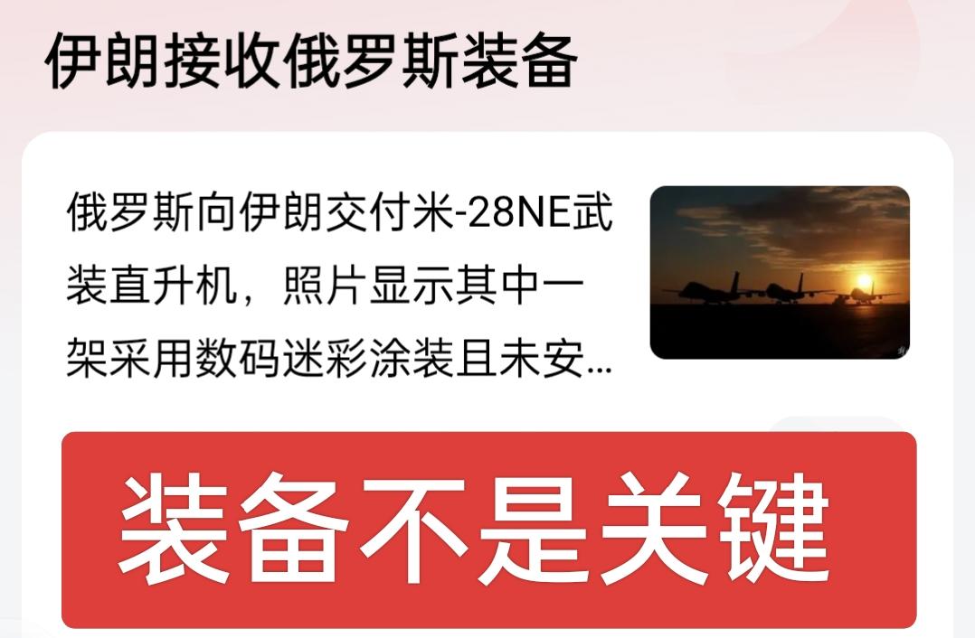 美伊关系紧张,大战一触即发!决定美国发动战争的原因从来不是装备问题,当年伊拉克的装备精良吧,还不是被美国轻松的拿捏了,大批的装备根本就没有用上,美国取胜的关键就是策反了好多内奸! 伊朗也一样,装备不是最关键的,再好的装备也抵不住内奸的破坏,一定要清除国内的内奸,美国任何机会,美国还未必真敢动手,巨大的代价美国未必能够承受!