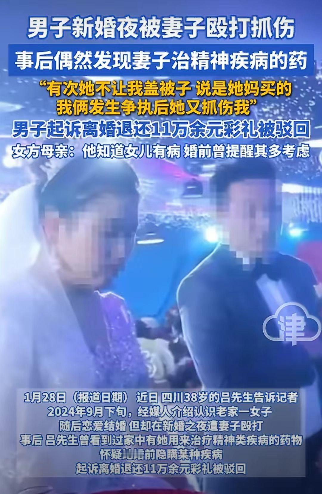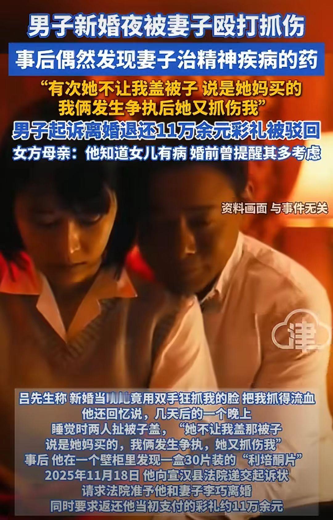 四川达州市,38岁的吕先生经媒人介绍认识小8岁的妻子李女士。 新婚当晚,吕先生被妻子李女士给打了。 事后,李女士解释自己是因为生理期心情不好。 吕先生也就没有多想,回门时,说自己不小心摔的。 几个月后,吕先生在家里发现妻子在吃精神病药物。 吕先生觉得被骗了,结婚前,妻子根本没有说自己有病啊!李先生接受不了,就向法院起诉离婚,并归还11万彩礼钱。 李女士和家人不同意了,丈母娘说婚前就和你说了,要多处处、多了解再结婚。 多处处、多了解,这算是说了吗?这是什么都没说好吗? 法院一审判,不准予吕先生和李女士离婚。 原因,吕先生在特殊日子5月20日给妻子李女士转了520元,两人感情还未完全破裂,还有和好的可能。 真是挺离谱的,媒婆介绍时,应该知道女方情况吧!应该把男女双方情况都说清楚,才能说亲吧! 真是公说公有理婆说婆有理。 这事让人感觉是女方父母想给女儿找个保障,男方想娶个老婆生个孩子。 结果婚后,男方受不了女方的病,女方不愿意放弃免费的兜底人。 民法典第1053条规定:一方患有重大疾病的,应当在结婚登记前如实告知另一方;不如实告知的,另一方可以向人民法院请求撤销婚姻。 请求撤销婚姻的,应当自知道或者应当知道撤销事由之日起一年内提出。 这是骗婚吗?你觉得最后两人能离婚吗?这样的婚姻是有效婚姻吗? 达州离婚案 精神病 婚姻