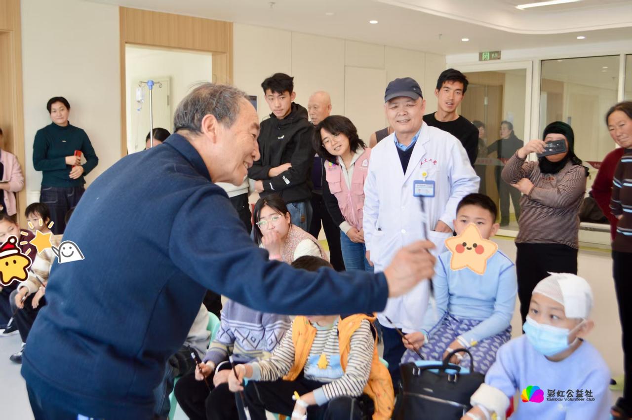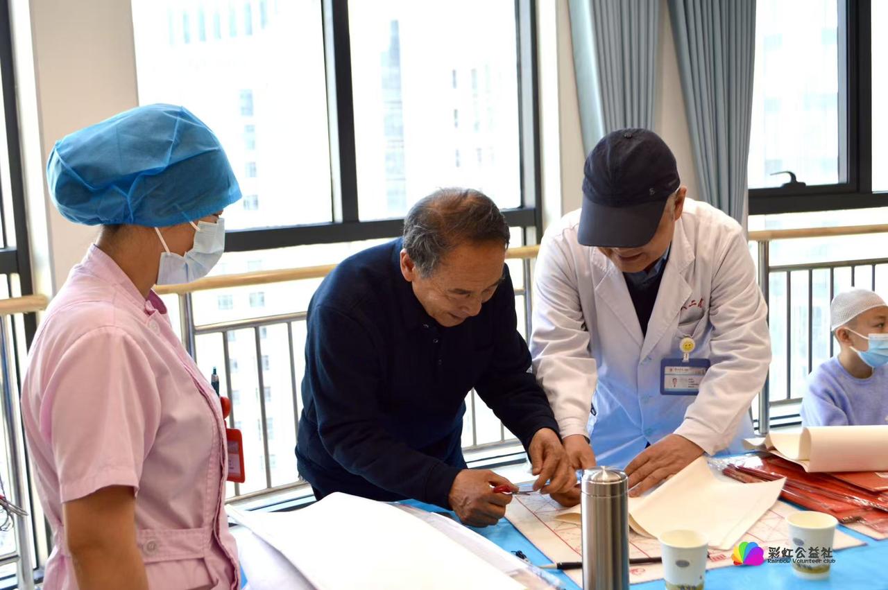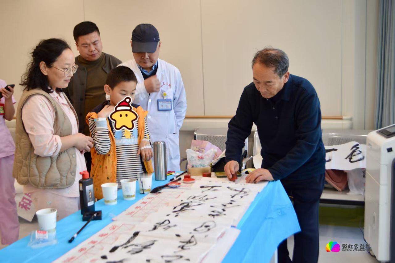 退伍军人书法家刘恒忠进医院 向患病小朋友们传授书法技艺 记者王志俭(穿石)文图 “小朋友们,我猜你们在医院除了治疗都在看手机。今天我讲书法不仅会充实你们的业余生活,会还增长你们的文化知识。”这是刘恒忠在兰大二院、给小患者上书法课时说的的开场白。 四九的一天下午,退伍军人书法家刘恒忠应邀来到兰大二院,向住院小患者讲授书法知识。刘恒忠是中国书画联谊会书法师,同时也是一名退伍军人。他在部队先后立三等功一次,还被62师树为先进标兵,并获得营团嘉奖各一次。 刘恒忠从小喜欢书法艺术,上初中时就在乡上小有名气。村上红白事、腊月写春联都有少年刘恒忠的身影。以后当兵入伍、转业银行,单位退休,几十年间刘恒忠一直没有放弃书法研习。因而成就了较高的书法造诣,先后几次获得全国书法大赛金奖。这几年他先后在高校、和不同行业书法班担任书法教师,深受学员们的好评。 刘恒忠告诉记者,接到彩虹公益社邀请到兰大二院给小患者讲课,他即高兴也有压力,毕竟从没给小朋友们带过课。为此,他认真翻阅了了相关资料。开课那天下午,兰大二院一间会议室内坐着几十名小朋友,看到刘恒忠老师走进会议室,小朋友们高兴的拍起双手。 刘恒忠一番幽幽开场白后,从最基础的握笔与起笔姿势讲起,小朋友们个个表情认真听刘老师讲解。讲完后小朋友们就迫不及待地拿起毛笔,临摹起刘恒忠写得作品。 ”一、二、三、四“虽然简单,却包含了最基本的笔画练习。刘恒忠一边讲解,小朋友们边写边用心琢磨。一位小朋友很有灵性,写得字还“像么像样”,刘恒忠当即给予了鼓励。“我也要得到刘老师的夸奖!”小朋友们i写得更起劲了。 愉快的书法课结束后,小朋友们欢呼雀跃让刘老师写福字。他们围成一圈仔细观看刘老师写字笔划。当圆润漂亮的福字跃到桌面后,小朋友不约而同一起鼓掌。一个小朋友感叹:没想到一个简单的福字,让刘老师写得这么好看!最后在场小朋友拿着书法作品,围站在刘老师身边拍下了珍贵留念。 临走时刘恒忠说,希望小朋友们能带着这份祝福,在新的一年里早日恢复健康重返校园!小朋友们纷纷杨起小手,和刘老师依依不舍告别。