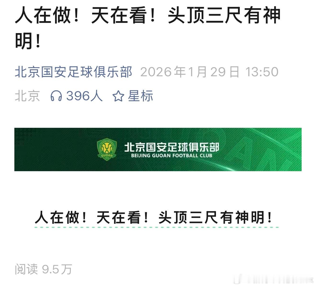 看了下第二批禁止足球名单里面,就没有和北京国安有关的人为啥国安也和一堆违规俱乐部一起被罚这么多分。不过我挺喜欢北京国安的,但国安这个回应还是不太职业,要么摆出证据证明自己没有违规行为,俱乐部官号说一句这话只能表达自己冤,外面的人看着云里雾里。国安 人在做天在看