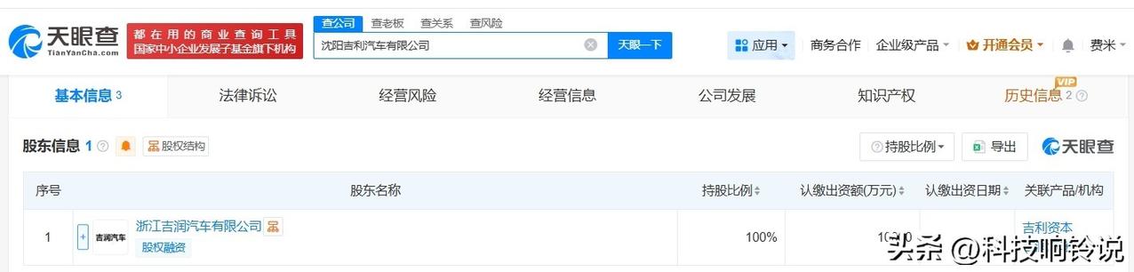 【吉利汽车在沈阳成立新公司 注册资本1亿】 天眼查App显示,近日,沈阳吉利汽车有限公司成立,法定代表人为王全心,注册资本1亿人民币,经营范围包括汽车零部件及配件制造、汽车零配件零售、汽车零部件研发、信息技术咨询服务等,由浙江吉润汽车有限公司全资持股。 天眼查信息: