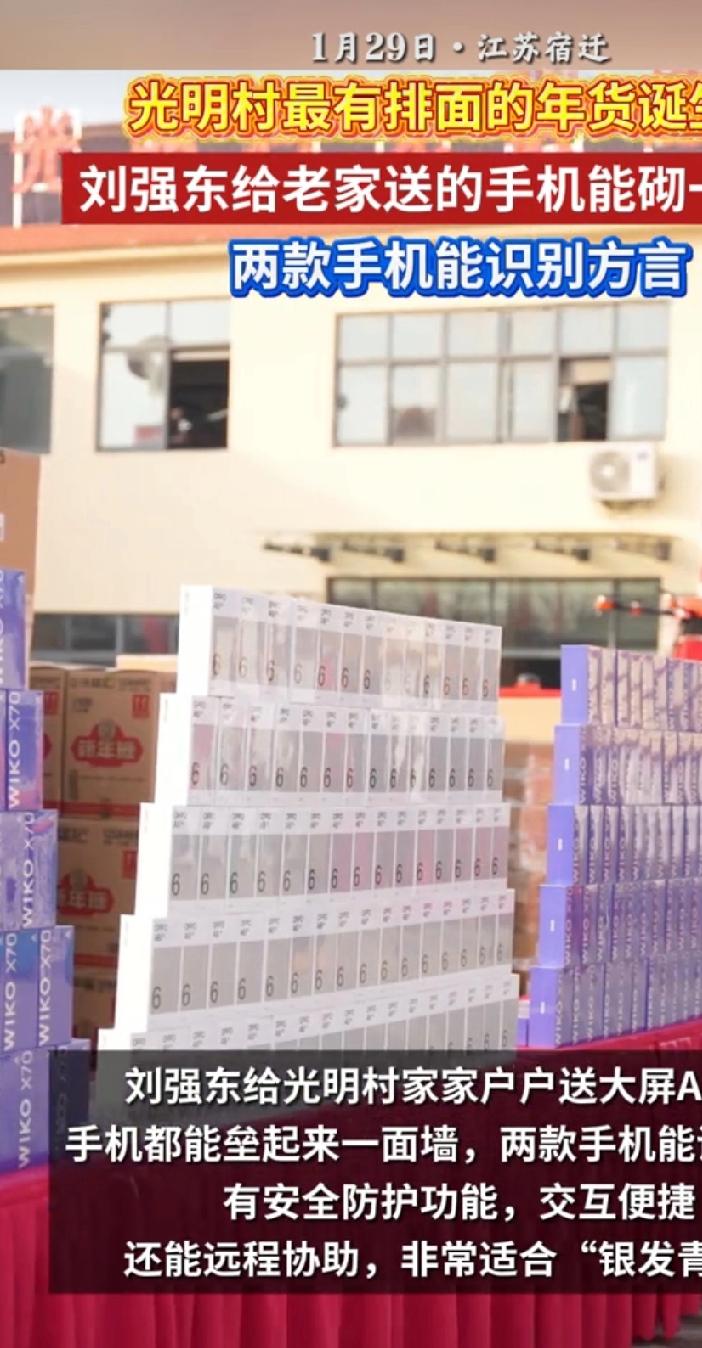扬子晚报 置顶 光明村最有排面的年货诞生了:刘强东给老家送的手机能砌一堵墙,两款手机能识别方言 1月29日的江苏宿迁来龙镇光明村,村口广场早被挤得满满当当。三轮车队排成长龙,村委会的广播反复提醒“带好小推车,人手不够喊邻居搭把手”,上千部大屏手机整齐码放,真真切切堆出了一堵“科技年货墙”。68岁的张大爷裹着厚棉袄,凌晨七点就来排队,领到OPPO A6l时,指腹一遍遍摩挲着机身,“去年的手机还在用,今年又送新的,这孩子心里始终装着咱”。他的儿子在苏州打工,往年视频通话得靠邻居帮忙调手机,如今对着屏幕说句宿迁方言“接通儿子”,通话界面立马弹出,老人眼角的皱纹都舒展开了。 这次送出的两款手机,没走高端旗舰路线,却精准戳中了乡村生活的痛点。OPPO A6l做了防水抗摔处理,村里老人下地干活揣兜里,沾了泥水擦一擦照样能用,远程协助功能更实在——子女在外地就能操控父母手机,教他们查社保、缴话费,不用再对着电话两头着急。WIKO X70侧边的“X”键是老人的最爱,短按就能调出打电话、看健康码、查天气的九宫格,不用在密密麻麻的APP里翻找。更贴心的是方言识别,不管是宿迁本地话,还是村里嫁过来的四川媳妇说的方言,都能精准识别,语音下单买菜、导航去镇上卫生院,比年轻人用得还顺手。 这些年货不是突发奇想的善举,而是延续了12年的感恩约定。1992年刘强东考上人大,全村人凑了500元路费和76个鸡蛋,让他揣着乡情北上求学。2015年起,他每年春节前都会回馈家乡,从最初给60岁以上老人发万元红包,到后来的米面油、家电,再到如今的AI手机、血糖仪,年货清单越列越长,越来越贴合村民需求。今年的投入超3000万元,除了万件年货,还搭起了AI教室,让村里孩子学编程,办起了有机器人表演的“村晚”,把科技和年味揉在了一起。刘强东的父亲站在自家楼上,看着乡亲们满载而归,脸上满是欣慰,这份牵挂早已不是简单的物质回馈,而是刻在骨子里的乡土情怀。 更值得深思的是,这些手机背后藏着对数字鸿沟的回应。数据显示,我国60岁以上老年网民比例还不足30%,农村互联网普及率比城市低15个百分点,很多农村老人不是不想用智能手机,而是复杂的操作、陌生的功能把他们挡在了数字时代门外。京东联合厂商用C2M反向定制模式,专门针对老人需求优化产品,没有堆砌花哨功能,却把“好用、耐用、安全”做到了极致。WIKO X70的AI防诈骗功能,能自动拦截虚假购物、冒充亲友借钱的诈骗电话,村里的王大妈就说,之前差点被网上买药的骗了,现在手机会自动提醒风险,心里踏实多了。 这份年货超越了礼物本身的价值,它让农村老人不用再为看不懂手机界面发愁,不用再因为不会视频通话想念远方子女,不用再被数字时代落下。当科技卸下复杂的外衣,变得简单易懂,就能真正走进普通人的生活。刘强东用最实在的方式告诉我们,回馈家乡不是搞排场、讲面子,而是把好事做到村民心坎上,让科技向善,让乡情升温。 科技的进步不该只惠及年轻人,乡村的发展也不该缺少数字温度。光明村的这些手机,砌起的不只是年货墙,更是连接城乡、弥合数字鸿沟的桥梁。它让我们看到,真正的公益不是单方面的给予,而是精准对接需求的赋能,是让每个群体都能共享发展成果。这份牵挂,这份担当,值得被看见、被点赞。 各位读者你们怎么看?欢迎在评论区讨论。