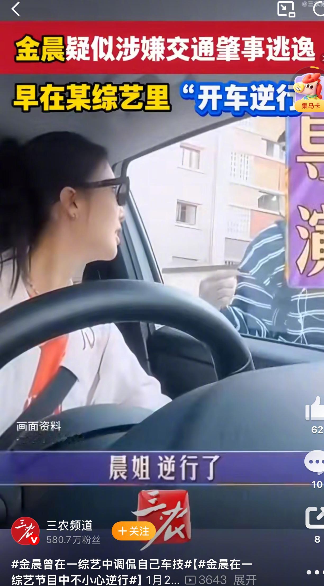 曝金晨交通事故监控截图 看来金晨对交通规则是一点都不懂啊,综艺节目中还逆行过