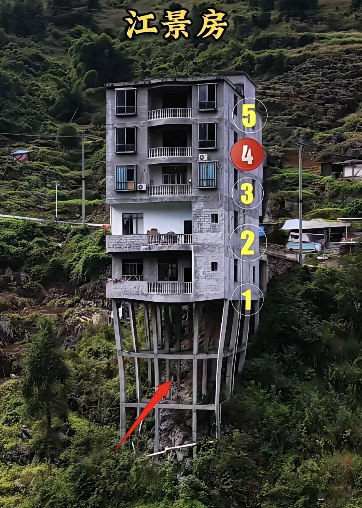 自建江景房,这房子修的更吊脚楼似的,不知道有没有安全隐患?
