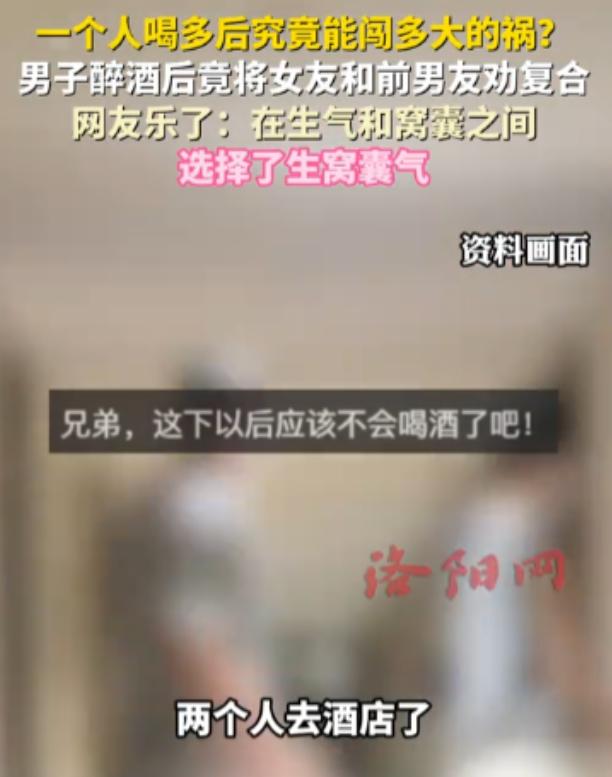 吉林长春,一男子喝多了酒后,非要女友将其前男友也找来,还愣是把两人劝复合了,当晚二人就去酒店开了房。而更离谱的是,吃饭、开房的钱还都是男子出的,最后男子连打车回家的钱都没有。网友:活见鬼了! 说白了,这事离谱到能让人笑到拍大腿再骂一句糊涂蛋,相当于自己花钱、出力,把身边的女友亲手打包送回了前任身边,最后自己落得个身无分文、孤身走回家的下场,说出去谁信啊! 这事就发生在吉林长春,我们先把来龙去脉捋清楚,没有半点虚构,全是实打实的离谱现场。 据说一名男子跟女友约着出去吃饭,酒桌上没把控住,一杯接一杯地喝,喝到最后彻底上头,脑子估计是被酒精泡得转不动了,突然就跟女友说,让她把前男友叫过来一起吃。 女友一开始估计也懵了,说不定还以为他是喝多了开玩笑,结果这男子还较上劲了,非叫不可,没办法,女友只能联系了自己的前男友。 前男友一到,场面不光不尴尬,这醉酒男子反倒比谁都热情,拉着前男友称兄道弟,一顿寒暄之后,竟然直接开启了“劝和模式”。 嘴里絮絮叨叨的,大概就是说俩人当初分手太可惜,看着还是很般配,非要让他俩再给彼此一个机会,就这么絮絮叨叨劝了半天,愣是把这对前情侣给劝得回心转意了。 估计当时这俩人也被他劝得晕头转向,再加上本身可能就没彻底放下,当场就和好了。 最让人看不懂的还在后面,饭吃完了,男子二话不说就冲到前台结了账,全程没含糊,仿佛自己才是那个陪女友到最后的人。 更离谱的是,俩人复合后,当晚就直奔酒店开了房,而这笔开房钱,竟然还是这个醉酒男子给拿的!等到他付完所有钱,口袋里彻底空了,连打车回家的几十块钱都没剩下,最后没办法,只能自己一步步走回了家,想想那个画面,就又好笑又心酸。 有网友看完直呼活见鬼了,这操作简直是刷新了大家的认知。 其实仔细琢磨琢磨,这事儿也不是没有端倪,男子喝醉后能这么主动地撮合俩人,说不定在喝醉之前,就已经隐约发现女友和她前男友之间还有复合的迹象,不然怎么会喝多了就专盯着这事儿来做? 说不定他心里早就有点膈应,只是借着酒精的劲儿,做了这么一出看似荒唐,实则藏着心思的事——毕竟从前男友那里过来的人,再原封不动地归还给前男友,这不就相当于光明正大给这个前男友戴了顶帽子吗? 说不准他本身就不想处了,故意借着醉酒,做了这么一件看似糊涂,实则早有打算的事。 还有人吐槽,这男子简直是冤大头本头,相当于自己把别人的女友玩够了,还亲手给人家送回去了,说不定人家俩人事后还得偷偷感谢他,帮他俩破镜重圆,这叫什么事儿啊?好好的恋爱不谈,非要自己给自己添堵、挖坑,最后落得个人财两空的下场。 再说了,这事也不能全怪男子醉酒糊涂,要是这个女的早就彻底忘了前男友,对自己的现任足够忠诚,哪怕男子再怎么劝,她也不会轻易动摇,更不会当场就和前男友复合,连夜去酒店。 所以说,遇到这种心里还装着前任、不够忠诚的女人,真的没必要纠缠,放下得越早,失去的就越少,免得到最后,像这个男子一样,竹篮打水一场空,还闹了个全网笑话。 感情里最忌讳的就是心里装着别人,谁的新欢不是别人的旧爱,但既然选择了现任,就该彻底放下过去,这既是对现任的尊重,也是对自己的负责。 以上所有内容都只是我个人的一点看法,不掺杂任何评价,只单纯解读这件事的来龙去脉和背后的一些隐情。 不知道大家看完这件事之后,是什么感受?觉得这男子是真糊涂,还是早有打算?又或者觉得这对前情侣的做法不妥?欢迎在评论区留下你们的想法,一起聊聊这件离谱又好笑的事。