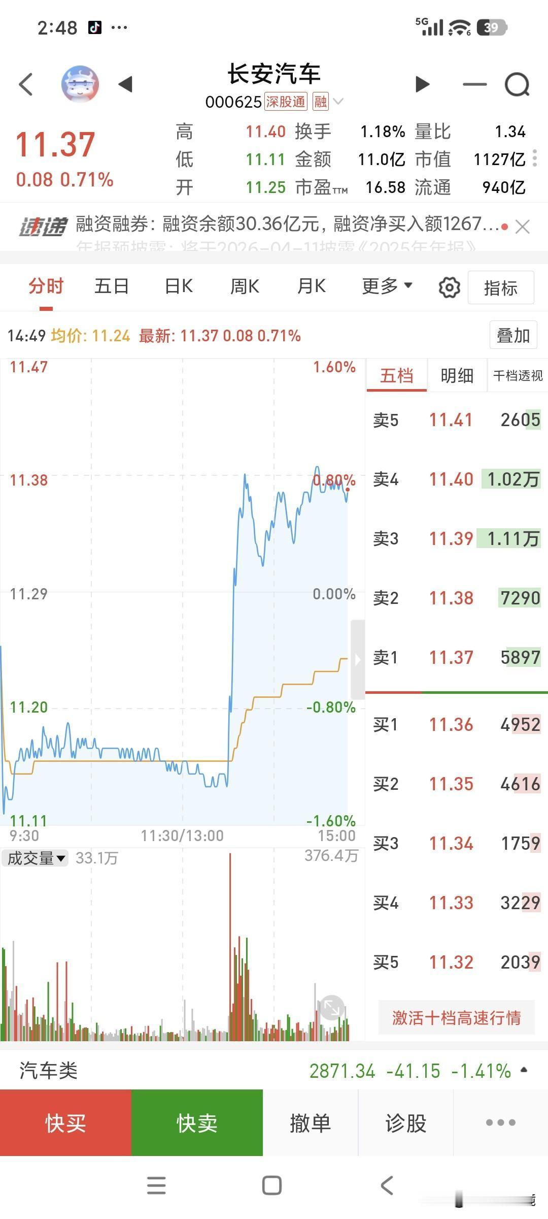 谢天谢地,长安汽车今天终于产房传喜讯一一生(升)啦 从水里(11.14元)直接拉升至11.39元,足足2毛5分💰,央企风彩依然。长安品牌 长安汽车
