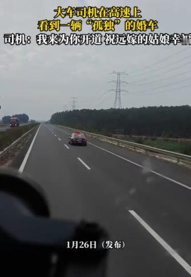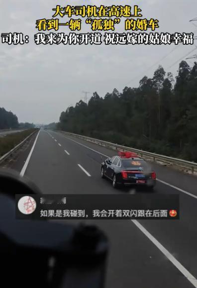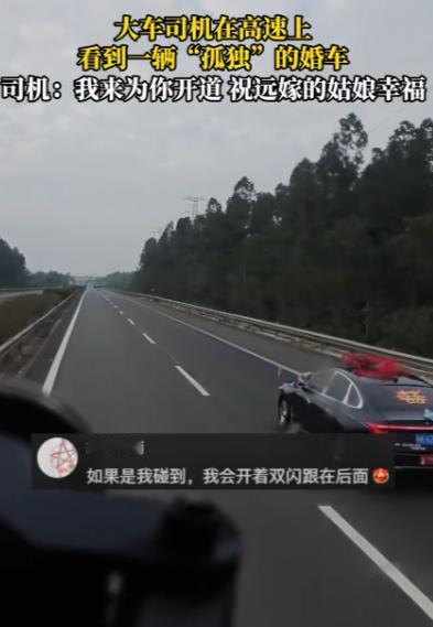 看哭了!广西,一位大车司机跑高速,突然看到前面一辆黑色轿车打双闪,开始还以为遇到了问题,可靠近一看,司机瞬间明白,这是一辆“孤独”的婚车,里面坐着的是一位远嫁姑娘,随后司机做了一个暖心的举动 前些日子有位大车司机,在高速上突然发现前面有一辆黑色轿车,一直开着双闪,在中间车道慢悠悠地走。按常理来说,高速上开双闪,要么是车出了故障,要么是遇到了紧急情况,需要别人帮忙。大车司机没多想,下意识就放慢了车速,慢慢往那辆黑色轿车靠近,想着要是真有难处,就搭把手。 等两车并行的那一刻,大车司机一眼就看明白了,心里也跟着一酸。那辆黑色轿车的车头,贴着鲜红的“百年好合”喜字,后视镜上还系着红绸子,风一吹,红绸子飘来飘去,看着挺喜庆。 可再仔细一看,这辆车前后空荡荡的,没有一辆随行的车,没有浩浩荡荡的迎亲车队,就只有这一辆车,孤零零地行驶在车流里。 再看车牌,是桂R开头,指向贵港,结合这场景,大车司机瞬间就懂了——这是一位远嫁的姑娘,正一个人开着婚车,跨越几百公里,去奔赴自己的婚姻。 他往车窗里瞥了一眼,看到车里坐着一位年轻姑娘,安安静静地坐着,眼神看着窗外飞速倒退的风景,没有新婚的雀跃,反倒藏着一丝落寞,像是在跟家乡的一草一木告别。 大车司机也是过来人,知道远嫁意味着什么,意味着要离开生养自己的父母,离开从小一起长大的朋友,放弃熟悉的家乡,去一个陌生的地方,重新适应一切,那种孤独和忐忑,只有经历过的人才懂。 大车司机没犹豫,也没上前搭话,只是轻轻按了两下喇叭,不是催促,也不是提醒,就是想告诉姑娘,有人注意到她了,有人陪着她。随后,他踩了点油门,慢慢超过了这辆婚车,然后刻意放慢车速,保持在限速范围内,同时打开了自己大车的双闪。 他开的大车体型宽大,挡在婚车前面,就像一道坚实的屏障,把后方车流的强光和杂乱的鸣笛声,都挡在了外面,给这位独行的姑娘,撑起了一段安稳的行驶路程。一路上,他每隔一会儿,就会从后视镜里瞥一眼,确认婚车稳稳地跟在后面,没有被其他车打扰,才敢安心把注意力放回前方路况。 姑娘一开始紧绷的肩膀,在看到大车一直挡在自己前面,为自己开道、护着自己的时候,慢慢松弛了下来。她知道,这位陌生的大车司机,没有别的意思,就是出于一份善意,想送她一程,给她一份温暖。 就这样,大车司机一路护着这辆孤独的婚车,直到遇到高速分岔路口,他知道自己要下高速,不能再继续护送了。 临走前,他又轻轻按了两下喇叭,一声是提醒姑娘注意前方路线,另一声,是藏在心底的祝福,祝她新婚快乐,祝她远嫁的日子,能被温柔对待。姑娘也懂了,轻轻闪了两下远光灯,作为回应,没有言语,却满是真诚的感激。 这段视频被发到网上后,很快就火了,收获了39万点赞,还有3万多条评论。网友们看完,全都破防了,有人说,这一幕看哭了,想起了自己远嫁那天的样子,也是一个人,没有送亲队伍,只有一颗奔赴爱情的真心; 有人说,现在很多婚礼都陷入了攀比,比车队档次,比酒席规模,却忘了婚姻的核心,从来不是排场,而是两个人的双向奔赴,还有这份来自陌生人的善意。 也有人吐槽,说远嫁太傻,好好的姑娘,何必背井离乡,去受那份委屈。其实这话没错,远嫁从来都是一场豪赌,赌赢了,是满心欢喜,有人疼、有人宠;赌输了,就只剩孤苦无依,连哭都没地方去。 可我们不能否认,这些选择远嫁的姑娘,都有着莫大的勇气,她们不是傻,只是把爱情看得很重,相信自己选择的人,会给她一个安稳的家。 而这位大车司机的举动,没有惊天动地,也没有求名求利,就是一件微不足道的小事,却戳中了无数人的心底最软的地方。现在很多人都说,人心浮躁,社会冷漠,人与人之间,多了防备,少了善意。可这件事告诉我们,这个世界,从来都没有那么冷漠,总有人在偷偷爱着陌生人。 大车司机每天奔波劳碌,为了生计辛苦奔波,却依然愿意停下脚步,用自己的方式,温暖一个陌生的远嫁姑娘。他护的不仅仅是一辆婚车,更是一份孤独,一份勇气,一份对幸福的向往。 这段高速上的邂逅,没有言语交流,却有着最动人的默契;没有惊天动地,却有着最朴素的善意。这辆看似孤独的婚车,其实一点都不孤独,它被一位陌生司机的善意守护着,被全网网友的祝福包围着。 愿每一位勇敢追爱的姑娘,每一位远嫁的姑娘,都能遇到这样不期而遇的温暖,愿她们的婚姻,没有孤独,只有幸福,愿她们赌上余生的勇气,都能换来一辈子的偏爱与陪伴。