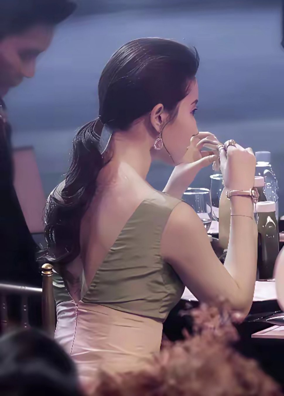 刘亦菲喝醉酒微醺的状态被拍到,脸上已经泛起了红晕,被拍到后眼神微怒