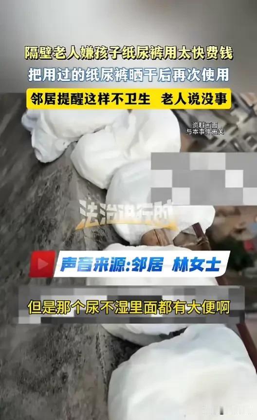 网友骂:节俭也要适度,这位老人真是缺德! 近日,福建宁德,一老人为了省钱,将刚出生孙女的纸尿裤洗都不洗一下,直接放天台晒干继续用。 邻居看见后好心提醒,没想到老人摆摆手说没事,还称孙女一天拉太多,买纸尿裤钱受不了! 这起事件引发了广泛关注和热议。邻居好心提醒时,老人却坚持认为没问题,并表示孙女每天拉便便太多,买纸尿裤的花费难以承受。 这反映出老人极度节俭的生活观念,也暴露出对婴幼儿护理知识的不足。 虽然节俭值得肯定,但在婴幼儿健康方面,过度节省可能带来更大的风险,比如感染、皮肤问题等。网友纷纷表示:“节俭要适度,孩子的健康才是第一位。” 此事件提醒社会各界,尤其是家长和长辈,在关心节约的同时,更要关注孩子的健康和安全。 科学合理的育儿方式应兼顾经济和卫生,不能为了省钱而忽视了孩子的基本需求和权益。正确的做法应是合理规划家庭开支,确保孩子得到最好的照顾。