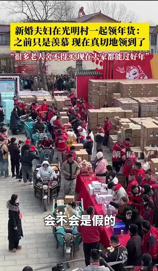 没有刘强东老人舍不得买这么多年货真的很羡慕光明村呀,有这样的老板真的就是一个村子的福气,年年都有数不完的年货。光明村全村1500户家家户户有年货