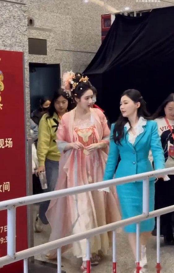 王玉雯金靖北京春晚路透双美同框杀疯了!王玉雯古风仙到发光,金靖蓝西装飒爽,北京春