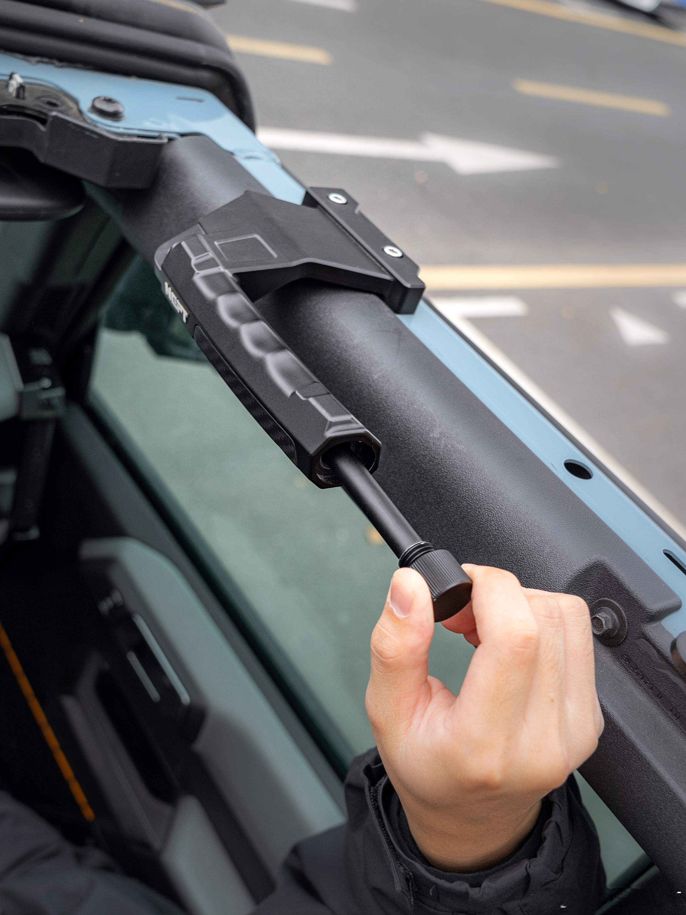 把安全感,握在手里烈马车顶,不止是风景线。 牧野工业 「破窗车顶拉手」,精工升级,安心随行。▫️ 双重复合材质 碳纤维饰板与铝镁合金基体拼接,视觉精致,握感扎实轻盈。▫️ 人体工学握感 贴合手型曲面设计,颠簸路段提供稳固抓握点,上下车借力更从容。▫️ 集成安全破窗锤 创新旋钮式设计,快速取出集成破窗锤,精钢锤头应对紧急情况。▫️ 科学高度设计 安装位置经人体工学优化,有效支撑且避免碰头。▫️ 精工静谧耐用 精密拼接工艺,内置减震设计,长久使用稳固无杂音。—— 为烈马,也为所有硬派车型。 我们让每一次抓握,都更踏实;让远行,更有底气。汽车牧野nept福特烈马福特烈马bronco越野改装改装升级汽车摄影