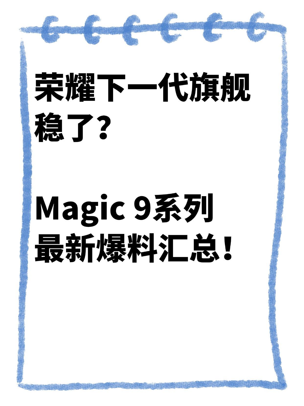 刚看到数码博主最新消息,荣耀的下一代旗舰 Magic 9 系列 已经进入工程样机(打样)阶段了!这意味着离正式发布又近了一大步,按照往年节奏,很可能在2026年下半年亮相。 ✨ 目前爆料的几个关键升级点很吸引人: 全系直屏,标准版回归小屏! 新系列在屏幕形态上会很明确:全系采用 2.5D直屏 设计。目前开发了两块新屏,尺寸分别约为 6.36英寸 和 6.85英寸。这意味着标准版很可能回归小尺寸直屏,而Pro版则会用上超大直屏,小屏爱好者狂喜! 影像实力再冲高 主摄或将搭载豪威的 OVB0D传感器,拥有 2亿像素 和 1/1.11英寸大底。更有博主爆料,系列已开案 双2亿像素传感器 方案,拍照能力值得期待。 核心配置拉满 性能上将搭载高通 第六代骁龙8至尊版 移动平台。续航会继承并强化Magic8系列上广受好评的 7000mAh以上 青海湖超大电池。AI体验也会是升级重点。 总的来说,Magic 9系列看起来要在 屏幕形态、影像、性能和续航 上全面发力。尤其是全系直屏和小屏旗舰的回归,差异化打得很明显。你期待这样的荣耀新旗舰吗?🤔荣耀Magic9[话题] 数码爆料[话题] 手机新品[话题] 旗舰手机[话题] 小屏旗舰[话题]