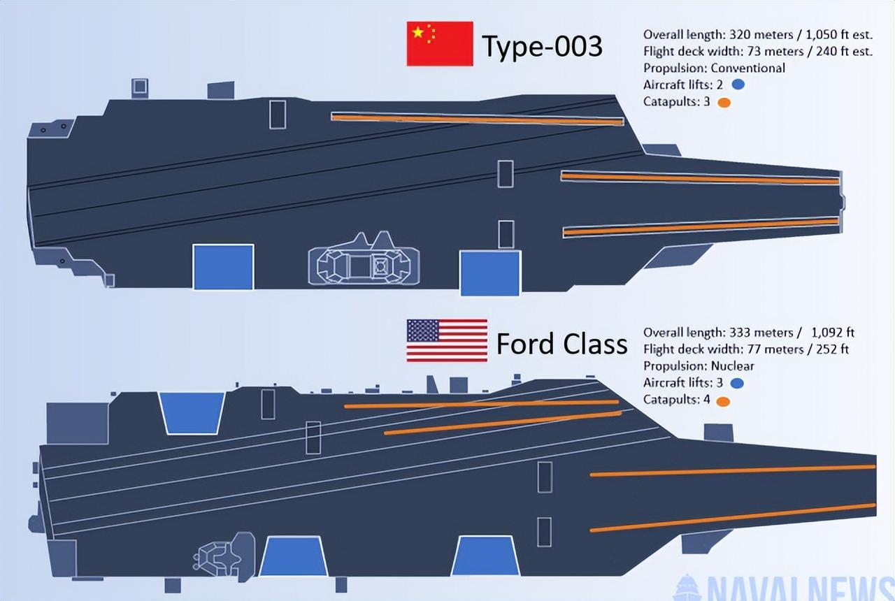 现在来看,美国海军肯尼迪号服役时间已经被推迟至2027年,而中国海军福建舰已经服