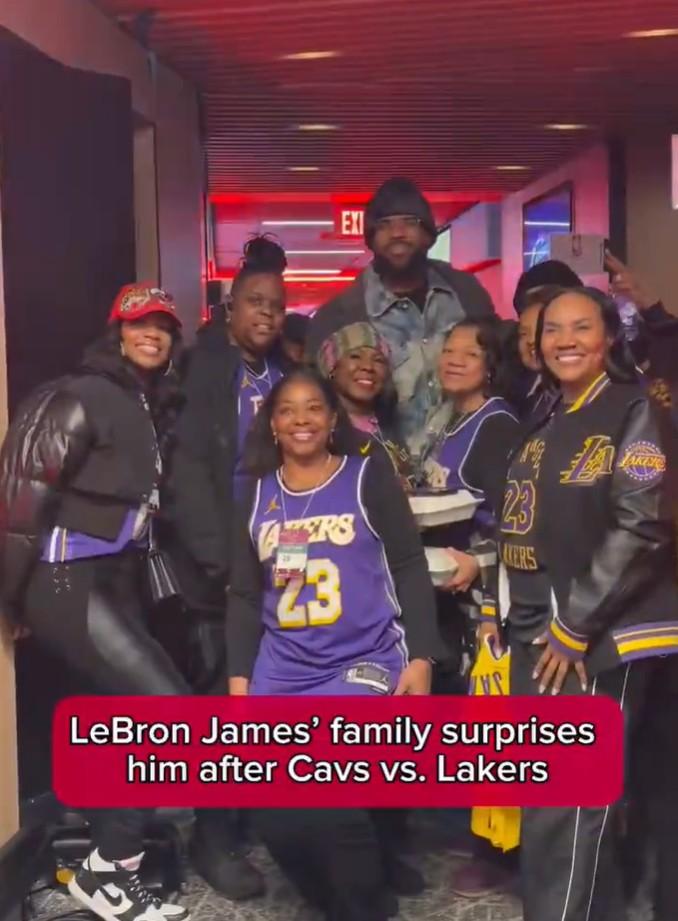 詹姆斯母亲:儿子,快过来和我的老姐们合个影! 湖人和骑士的比赛赛后,詹姆斯“被迫营业”,被他妈妈拉着和一帮闺蜜们合影,并挨个送上签名球衣。 这是詹姆斯回到克利夫兰主场打球,来的都是詹姆斯母亲格洛里亚在当地的老朋友,有几个是从阿克伦赶过来,小时候没准都接济过詹姆斯一家(5岁到8岁时,詹姆斯搬了12次家),都算是詹姆斯的老阿姨。 詹姆斯这场球反正是拉了垮了,但来不及感怀,要连夜奔赴华盛顿打下一场比赛,而格洛里亚八成要留在老家开party了......