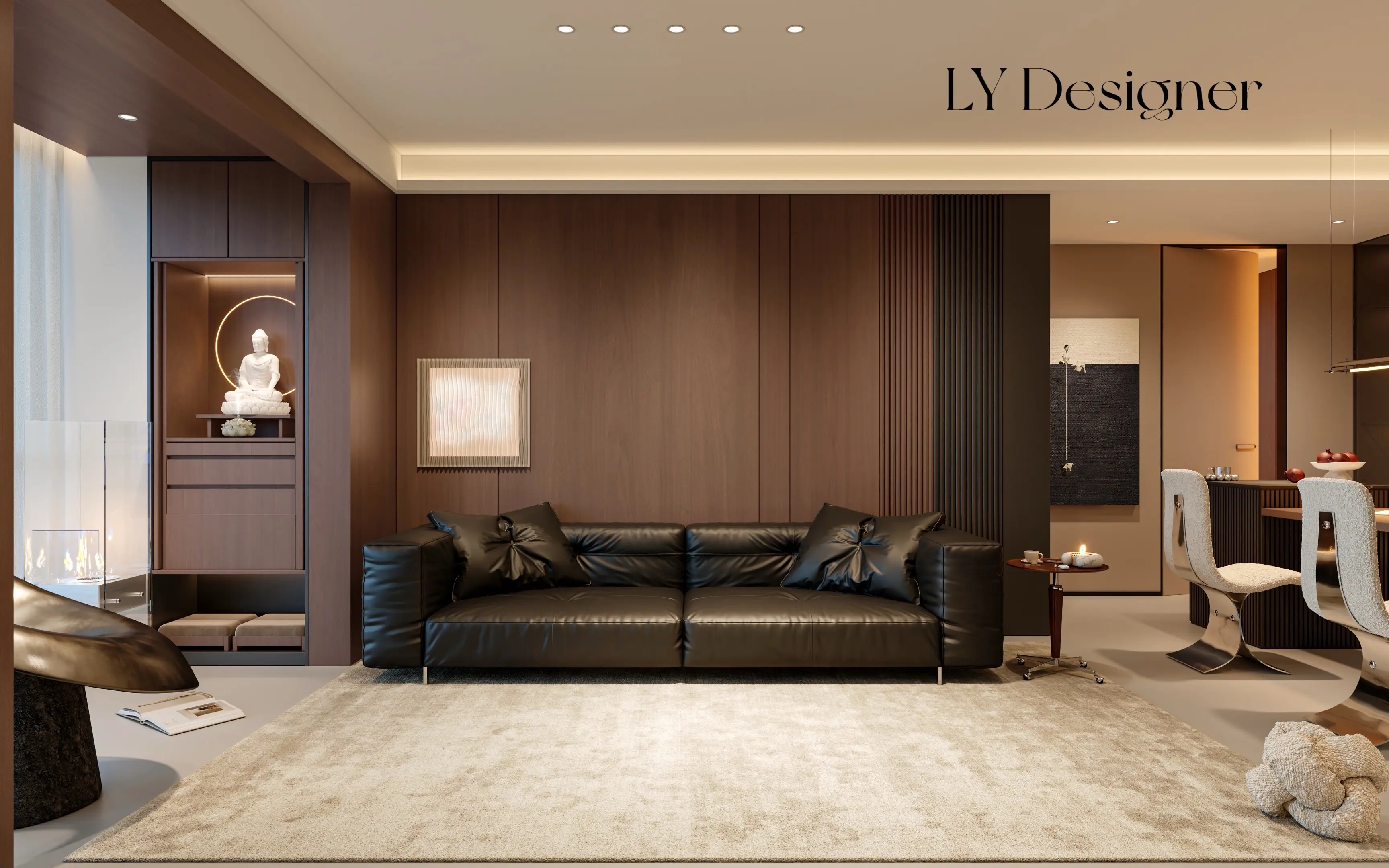 • 𝑳𝒀 𝑫𝑬𝑺𝑰𝑮𝑵 以沉稳的黑色定调空间气场,大面...
