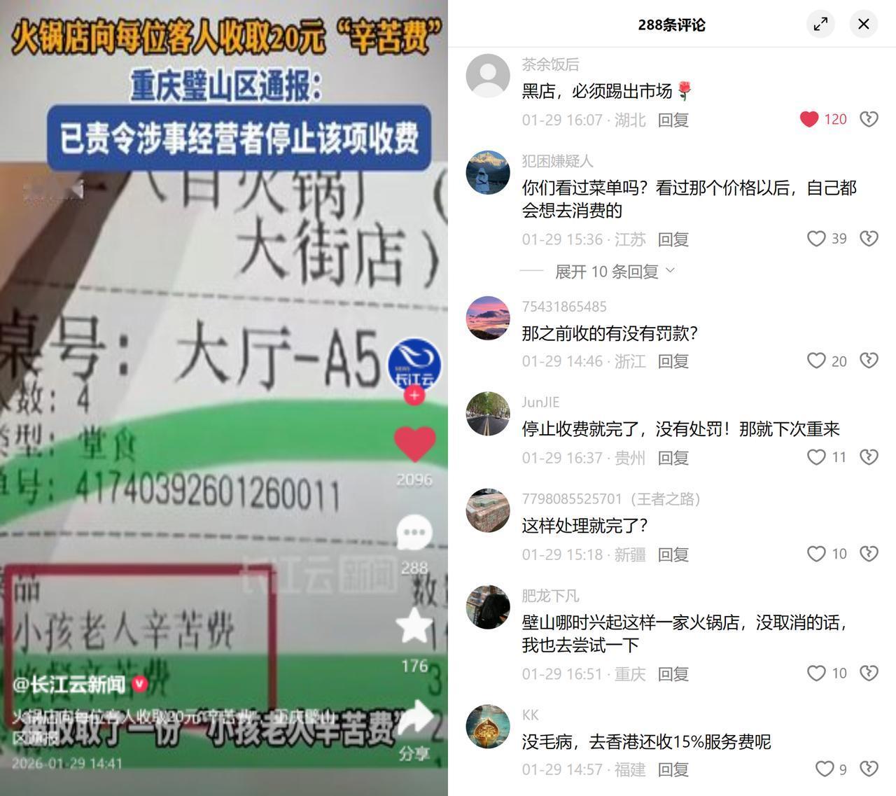 收辛苦费的火锅店栽了 重庆有家开了8年的火锅店,搞了个零利润菜品+收辛苦费的模式,结果被有关部门责令停止收费,没罚款也没提退费,引来大家一片争议。 这事看着是个案,说到底是餐饮内卷下的擦边球游戏。现在线下餐饮卷得厉害,低价引流成了拉客标配,但房租、人工成本摆在那,光靠卖菜赚不到钱,就想着在收费名目上钻空子。有人拿香港服务费对比,但人家那是行规且提前明说,这种辛苦费却模糊了明码标价的边界,没提前讲透的话,消费者吃完结账难免有被套路的感觉。更关键的是,只叫停不处罚的处理,确实容易让人心存侥幸,反正没损失,换个名目再来就是。 餐饮要留客,得靠实在,别耍小聪明。你遇过这种明低暗高的套路吗?