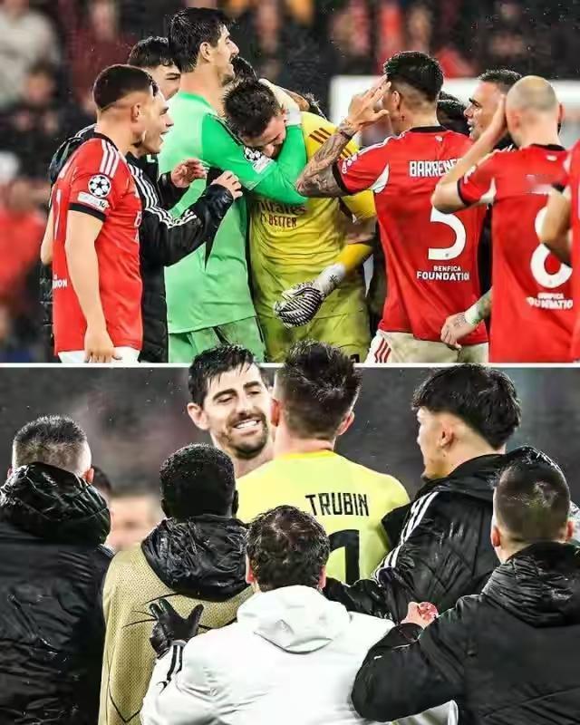 特鲁宾苦苦哀求,让我起来让我起来,我要被你们活活压死了。 队友们根本不答应,再坚持十秒,我们还没有过足瘾。你看咱们教练还在那里直蹦呢。 特鲁宾要疯了,我能看见吗我。。。。。 特鲁宾当然无法看到穆里尼奥的疯狂庆祝。 二十二年前庆祝那是更疯狂的动作——一溜烟的滑跪。 已经63岁的穆里尼奥,现在只能用狂奔,冲着看台拍胸振臂狂欢,去宣泄心中的炽热。 这可是皇马啊。 “你大伯终归还是你大伯”。 岁月染白了两鬓的风霜,但是夺不走内心的狂飙。 即便那不再执教豪门,混迹二流球队, 穆里尼奥依然是最特殊的那一个。 97分钟,最后的任意球机会降临。穆里尼奥在场边指挥特鲁宾冲到皇马禁区参与争顶。 我们知道他能做到。几周前对波尔图时,他就差点在最后时刻扳平比分。我记得那种最后一分钟决定胜负的感觉。 你必须改变策略,承担风险。 胜利永远是最重要的。 本菲卡前场右路开出任意球到禁区内,门将特鲁宾头球攻门顶进,3:2绝杀皇家马德里。 横的怕愣的,愣的怕不要命的。 不要命的,怕的是穆里尼奥。 因为穆里尼奥总是“穷极思变”,总是“破釜沉舟”,总是跟你玩命对赌。 梅开二度的姆巴佩表达了敬意之外,心服口服。本菲卡确实表现更出色,我们活该落到这个境地。本场比赛的结果,无关实力,也无关战术。核心问题在于求胜欲不足。 补时阶段的五分钟之内,阿森西奥、罗德里戈两名主力球员,竟然两黄一红先后被罚下场,明显有些输不起之外,足见比赛的激烈。 控球率只有33%的劣势之下,本菲卡竟然打了22脚射门,其中12次射正,8次得分机会。而鼎鼎大名的皇马,16脚射门,6次射正,3次得分机会。而解围的次数是本菲卡16次,皇马15次。 一个明显的事实是,本菲卡只要胜利,只要晋级。 本菲卡或许已经打上了穆式印记: 为了胜利,不择手段。 穆里尼奥回归葡超执教本菲卡后,本赛季取得了13胜6平的不败战绩,但仍然落后波尔图10分,只能排名第三。波尔图在联赛中的成绩是18胜1平。 此时此刻,对于本菲卡球迷来说, 豪横的拿下皇马,拥有这样的没边”的幸福,足够了。