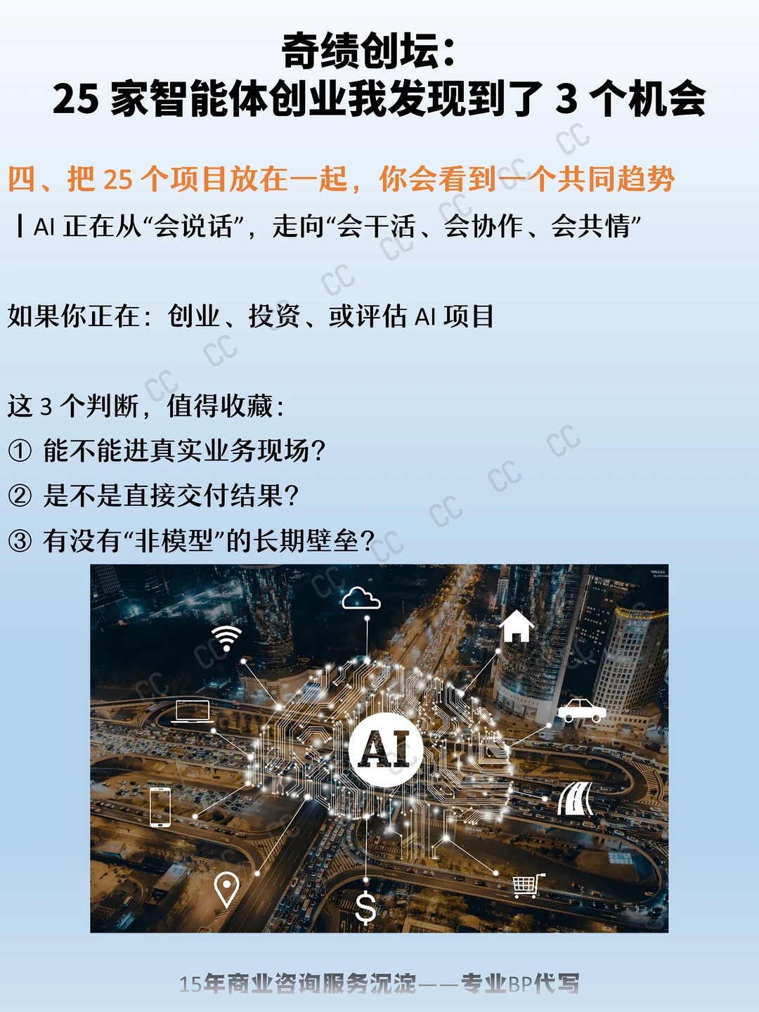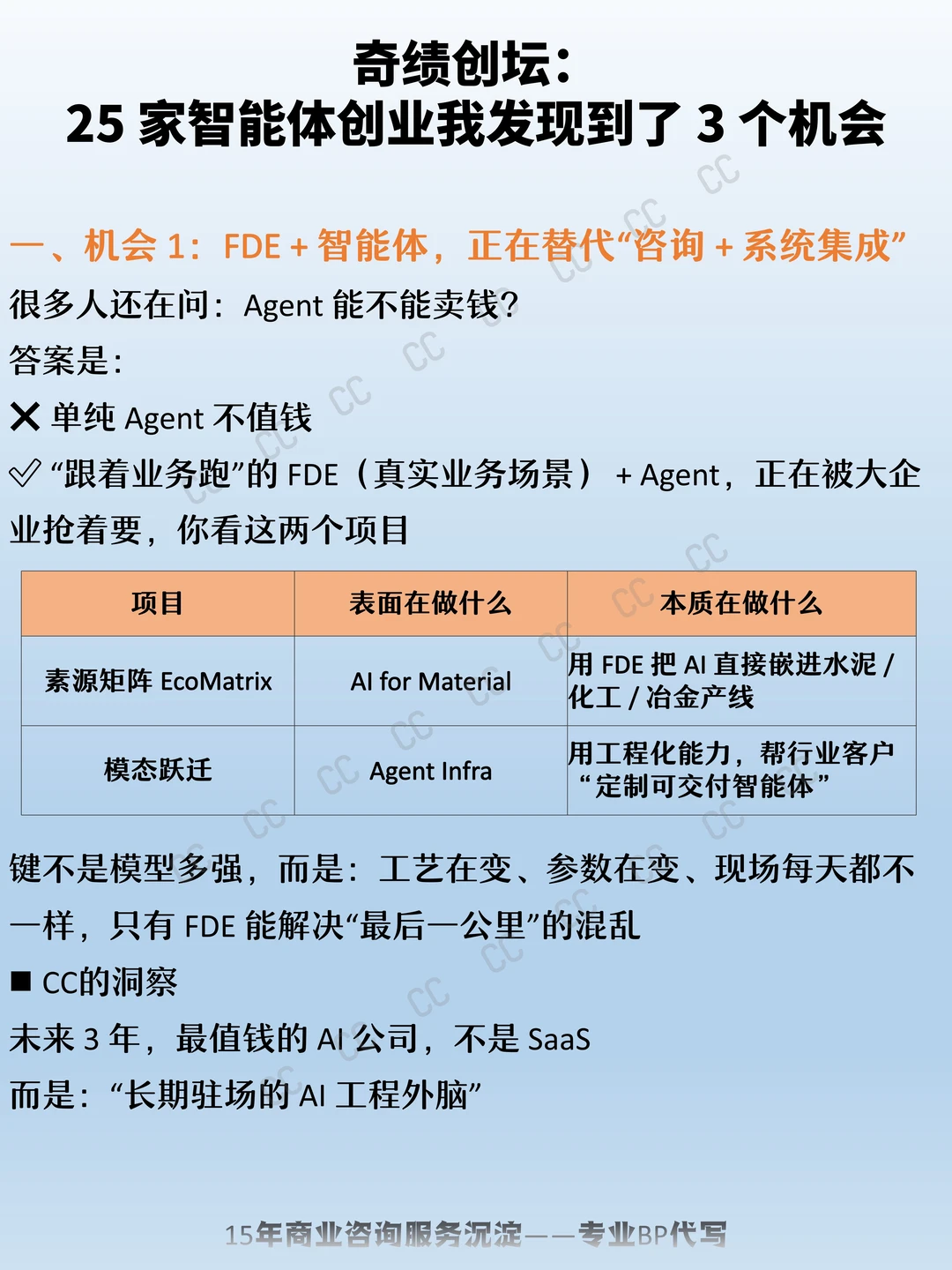 最近CC花了几天时间,把奇绩创坛这一批 25 家智能体相关创业项目完整过了一遍 看完后 有一个强烈感受: AI 创业的分水岭,已经不在模型,而在“能不能嵌进真实世界” 说白了就是 哪些方向,已经开始真正赚钱 / 被产业买单 / 能长出来? 智能化转型 奇绩创坛 创业