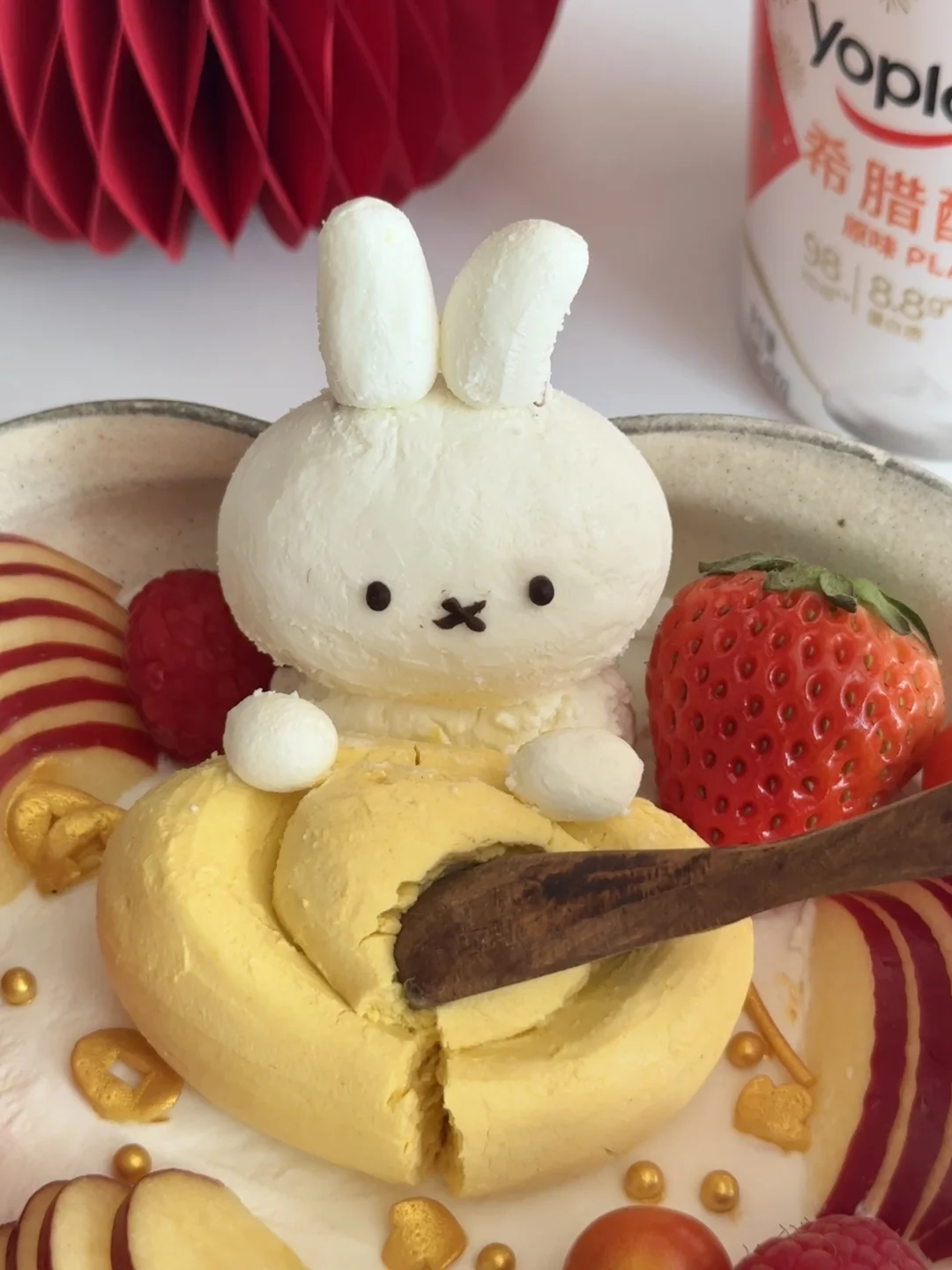酱酱~用希腊酸奶捏了只抱金元宝的米菲兔