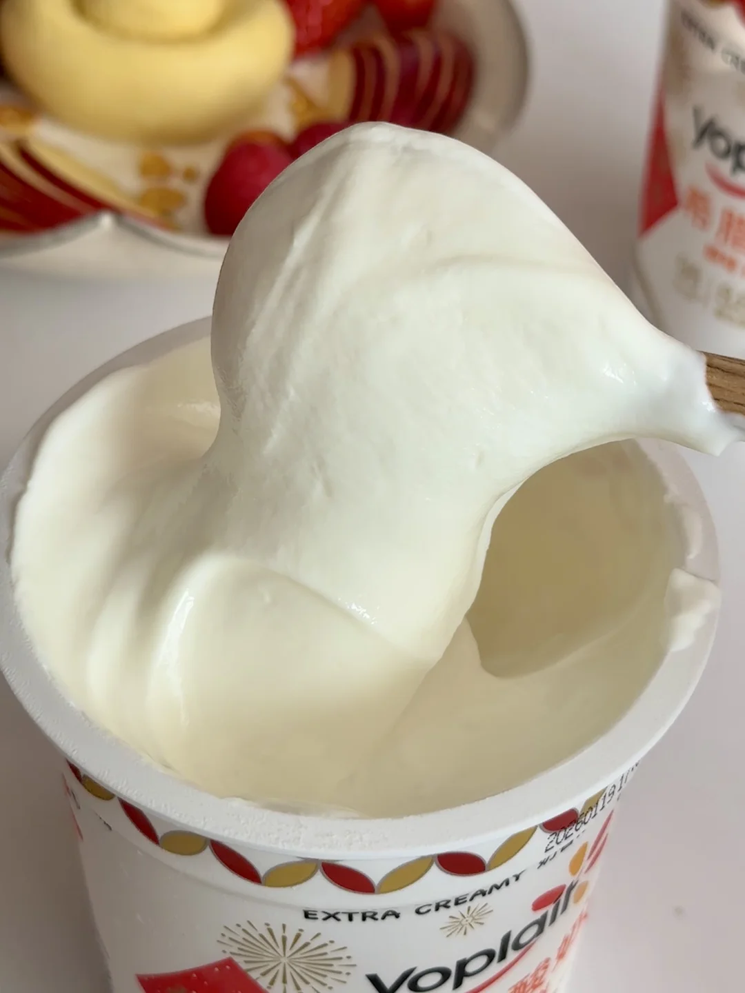 开盖就能闻到一股浓浓的奶香味,搅一搅质地像奶酪一样丝滑浓稠