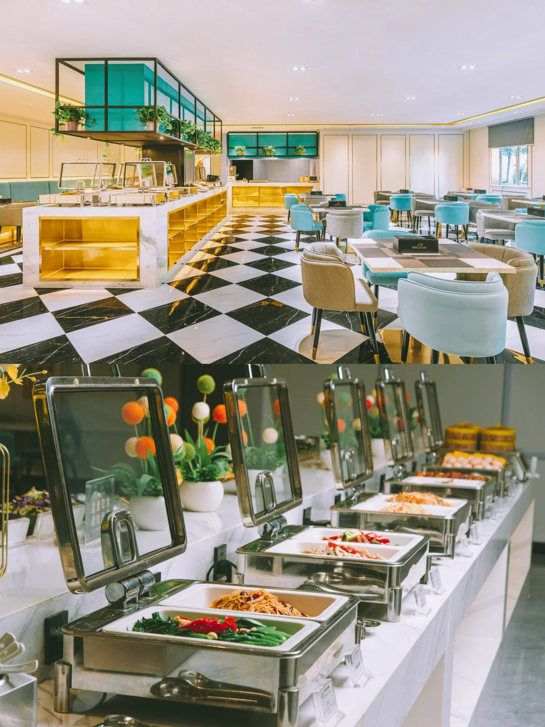 🔹自助早餐|7:00-10:00开放,中西式菜品齐全,现煮云吞面、粤式茶点、西式面包水果,早餐吃撑才有力气玩