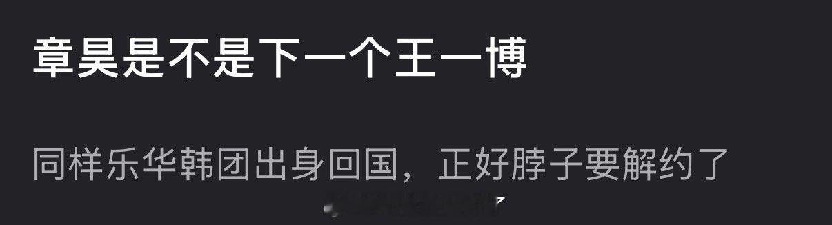 有网友问章昊是不是下一个王一博?同样乐华韩团出身回国,正好王一博也要解约了